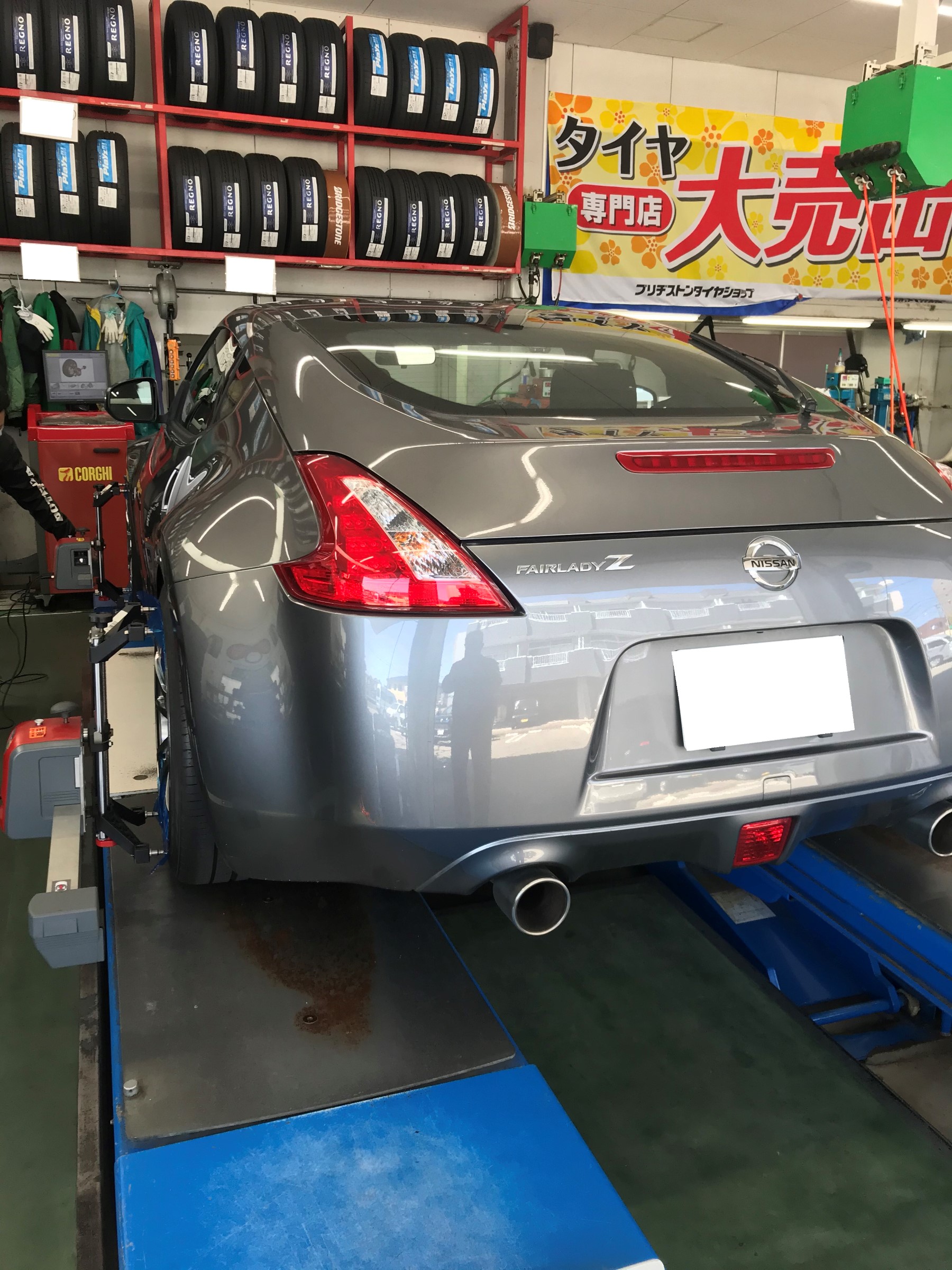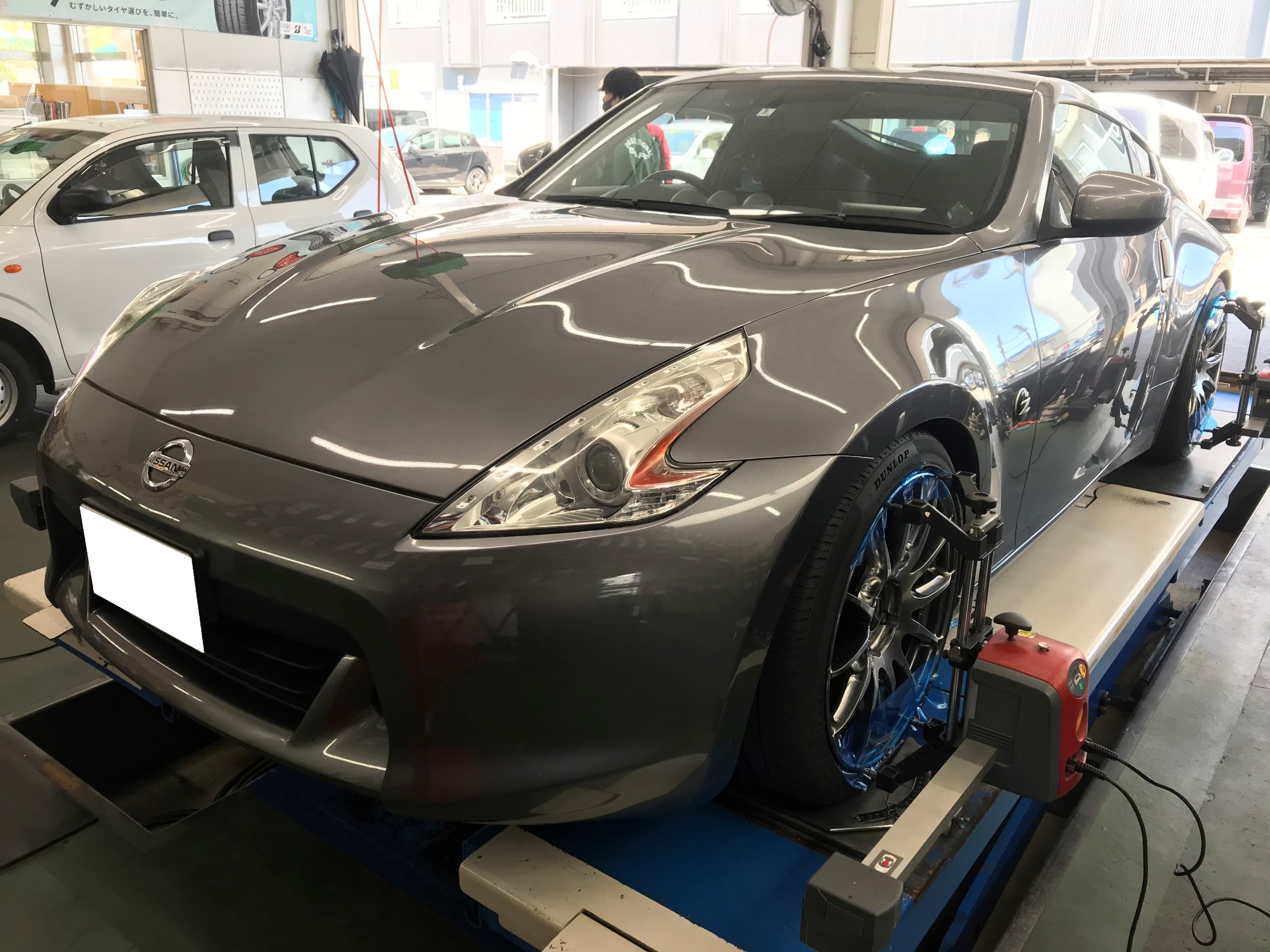 先日お電話にてご予約いただきましたお客様のお車「フェアレディーZ」のアライメント作業です。