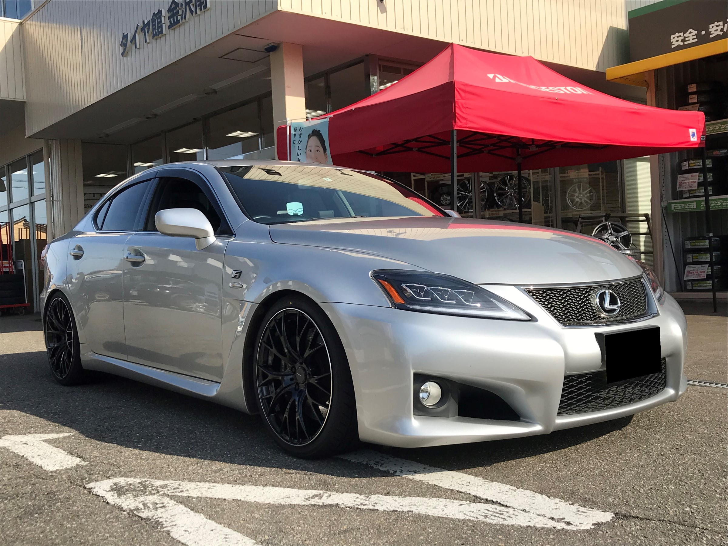 「レクサス IS-F」は19インチ標準。今回は乗りやすさ重視でインチキープ19インチのまま装着です。