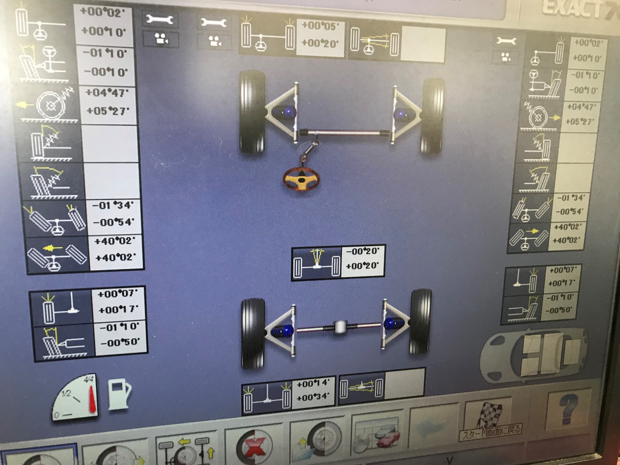 「アライメントテスター」のモニターで、お車の基準数値を確認!