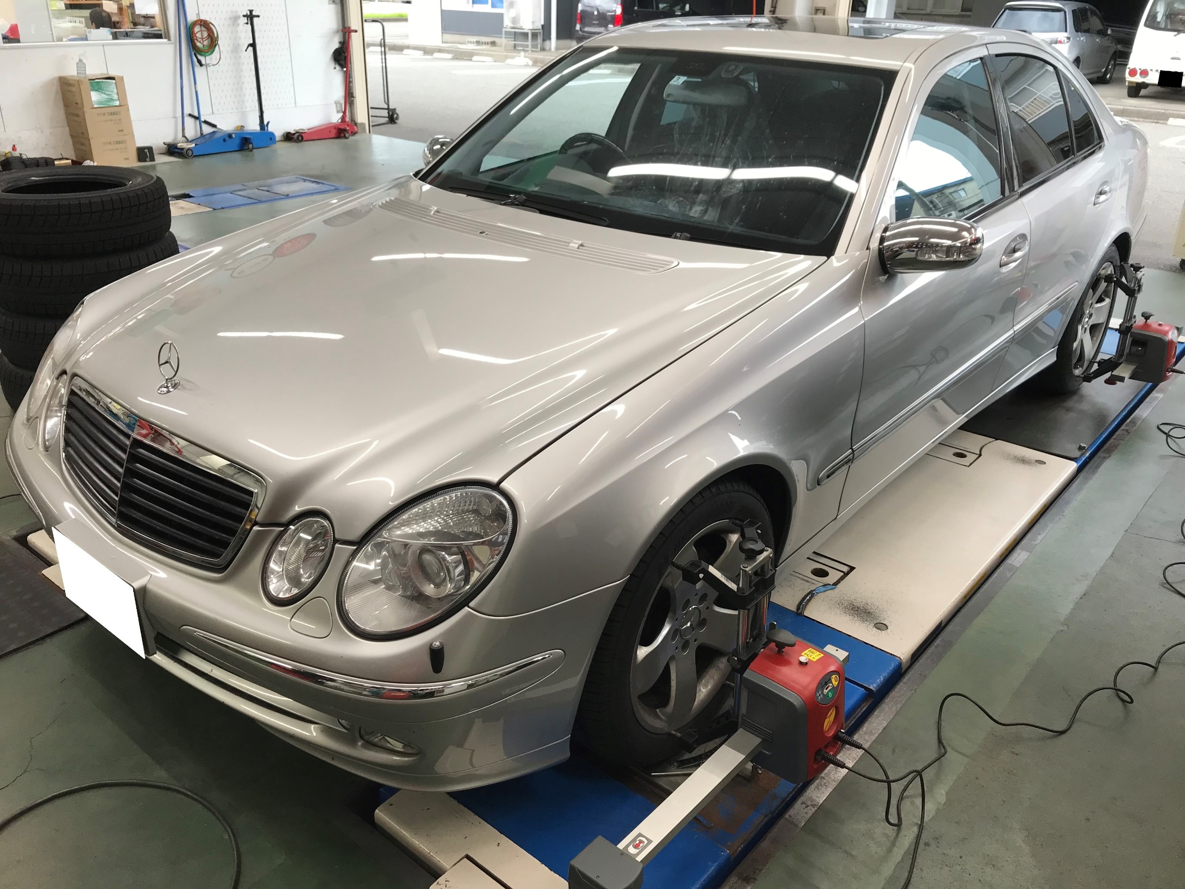 本日は「メルセデス・ベンツEクラス(W211)」のアライメント調整です。