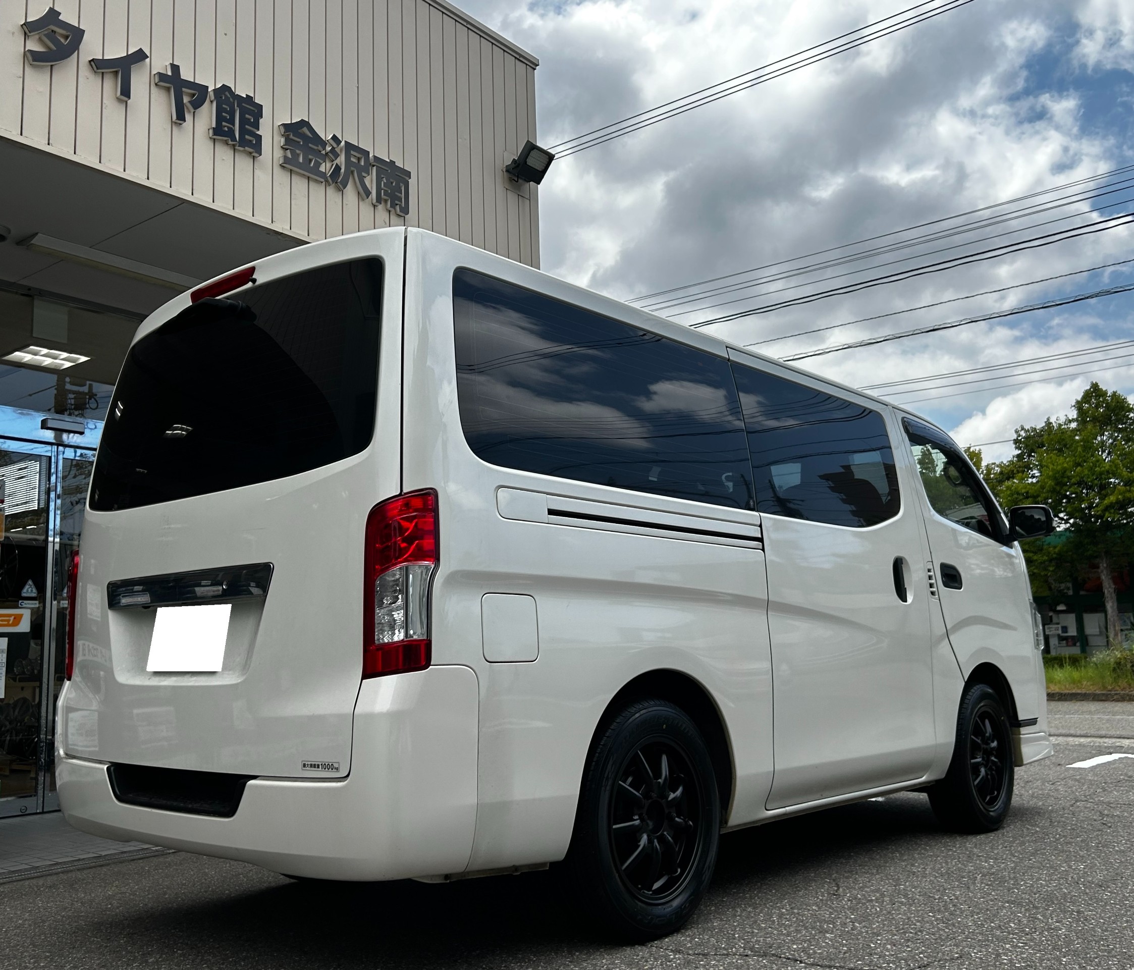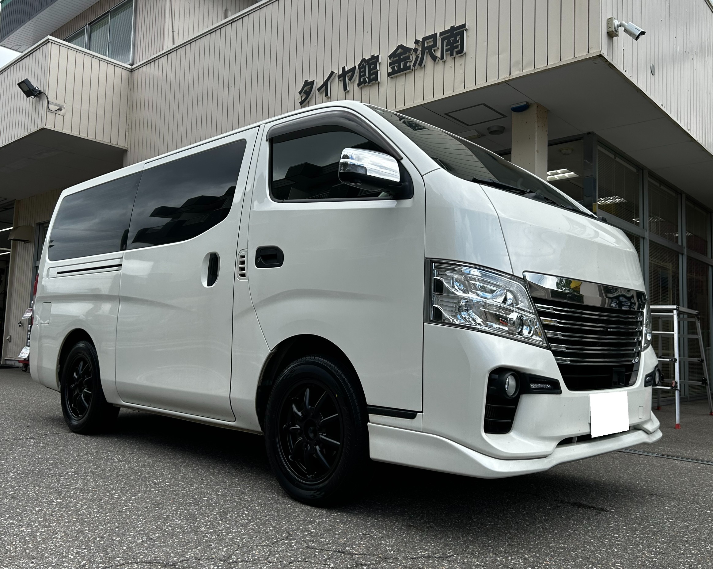 『NV350キャラバン』へタイヤ&アルミホイールをお取り付けさせていただきましたのでご紹介。