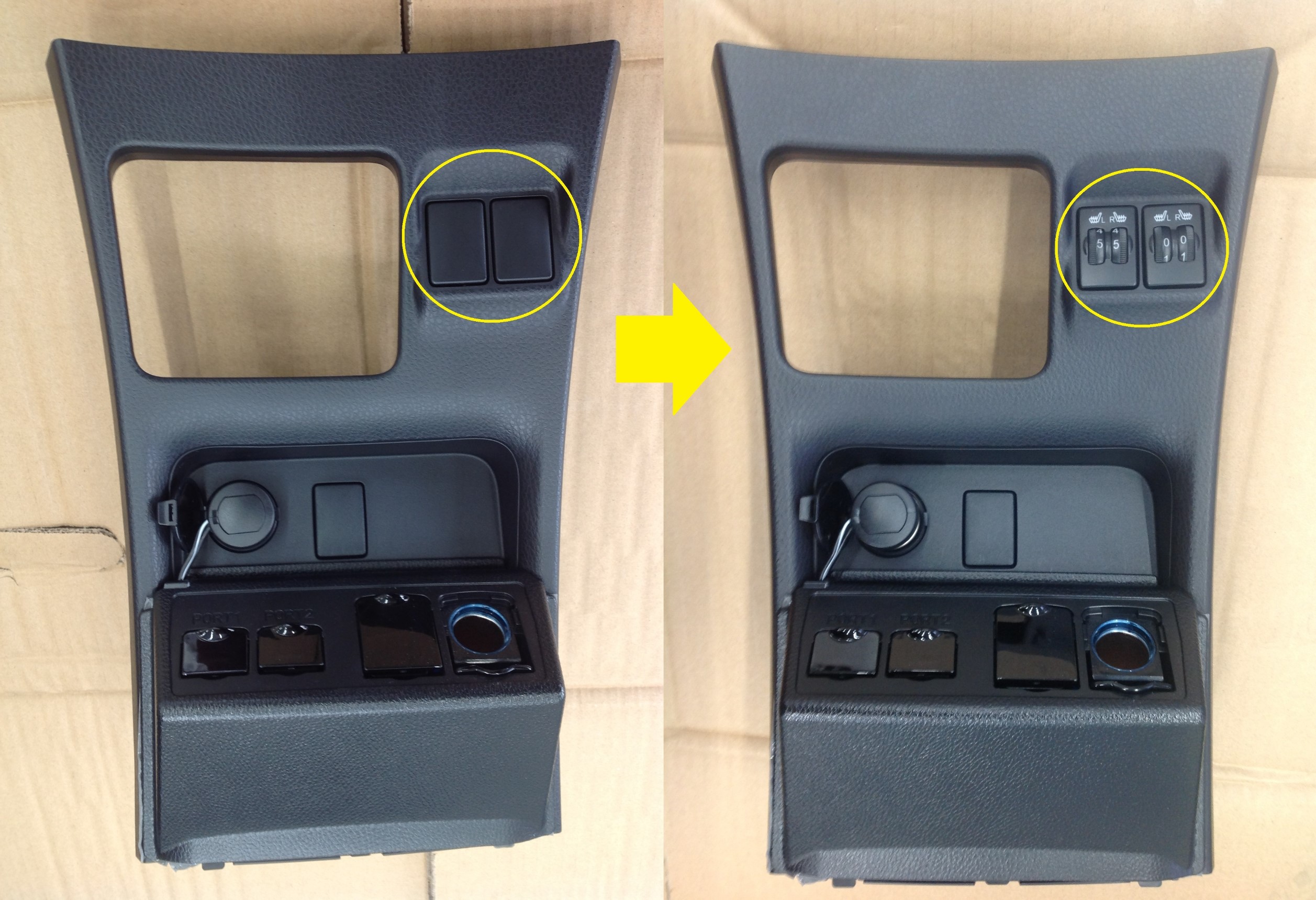 ヒーターの操作スイッチはスイッチホール(通称メクラ)にはめ込むタイプで