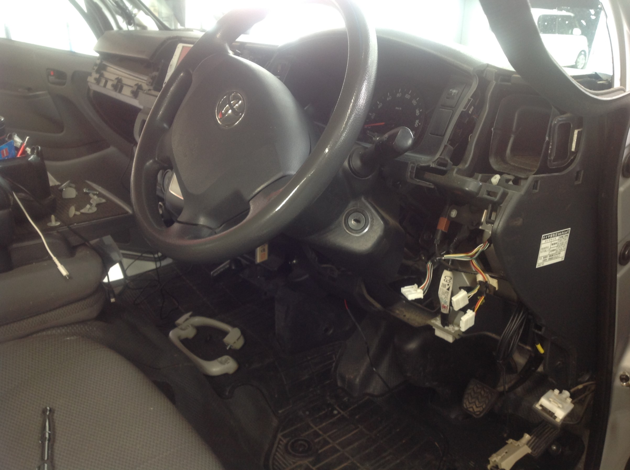 ハイエースでは「ステアリングハンドル」右下の空きスペースを利用します。