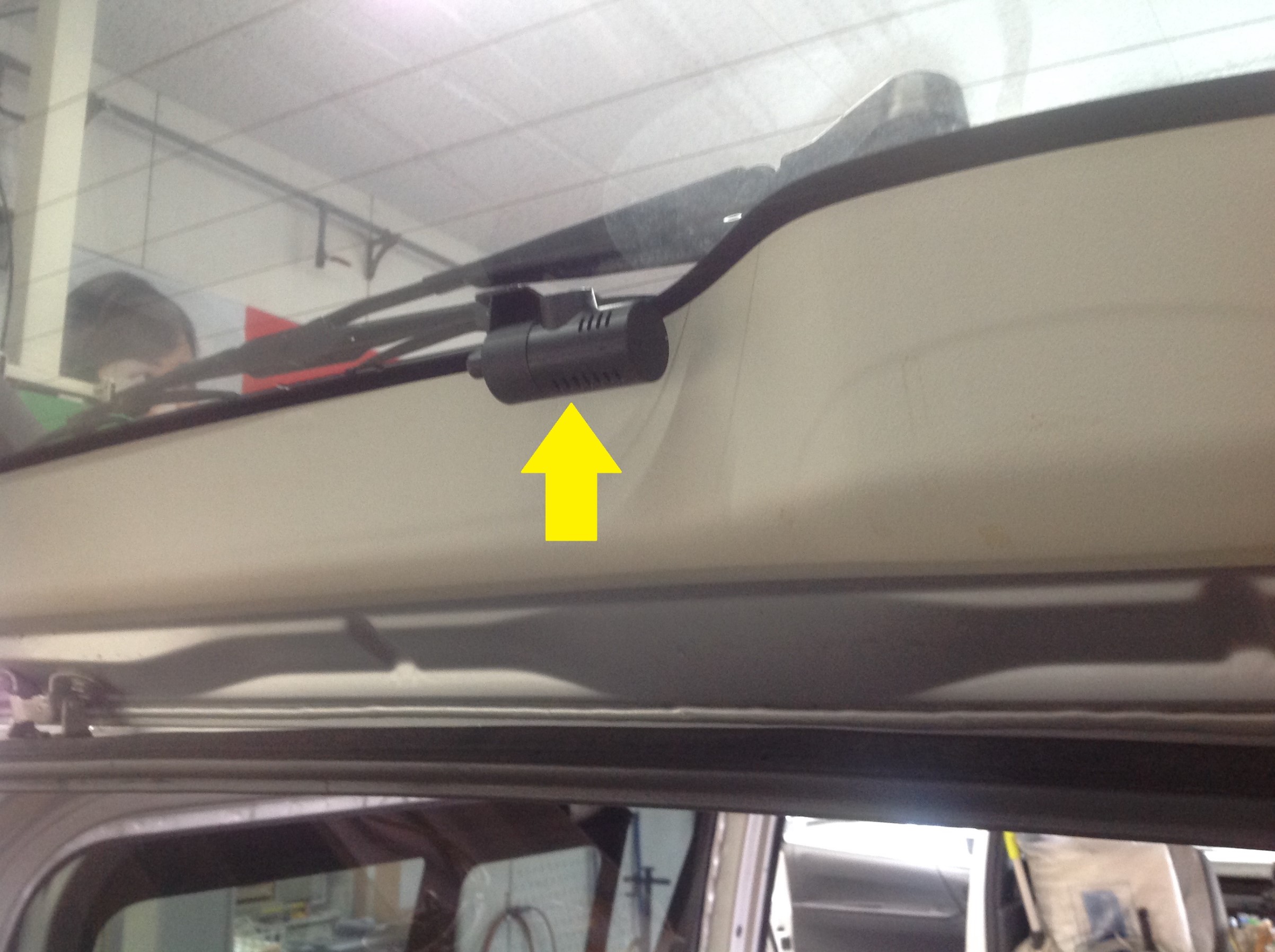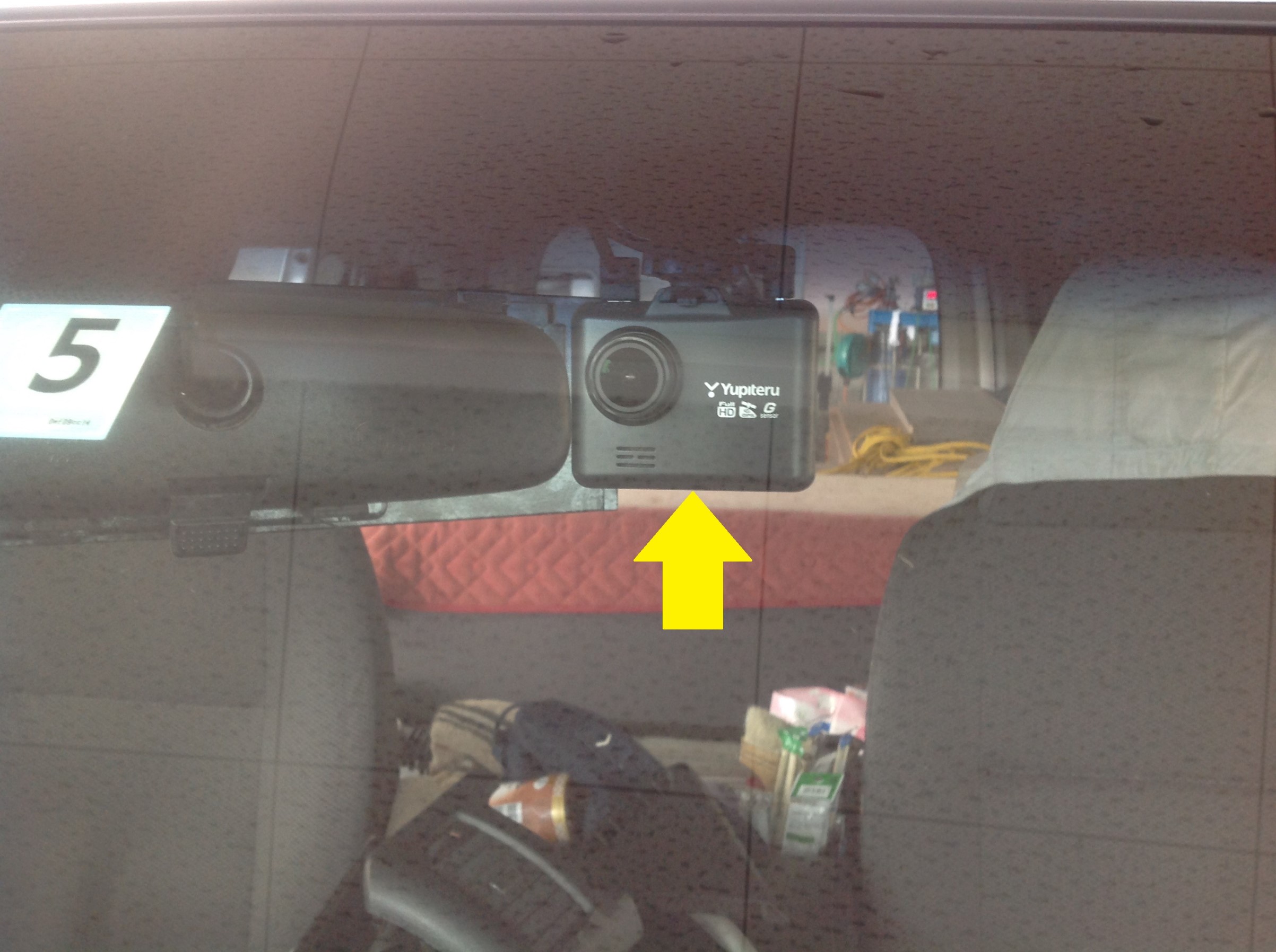 ドライブレコーダー「フロントカメラユニット」取付後の画像。車外からはこんなカンジです!