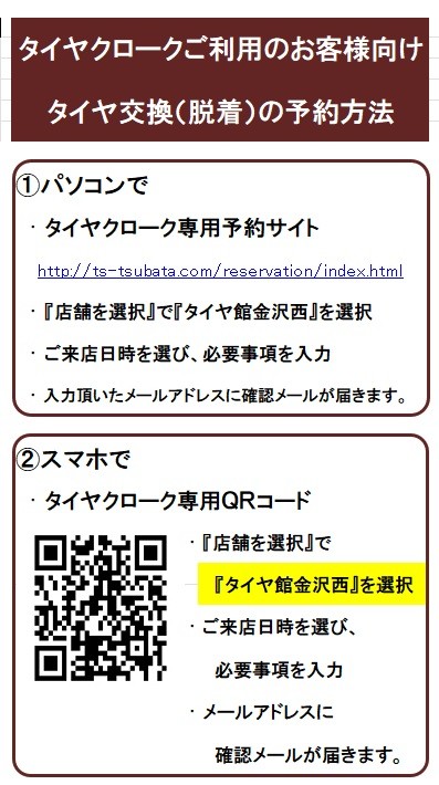 タイヤクロークご利用のお客様のタイヤ交換予約について