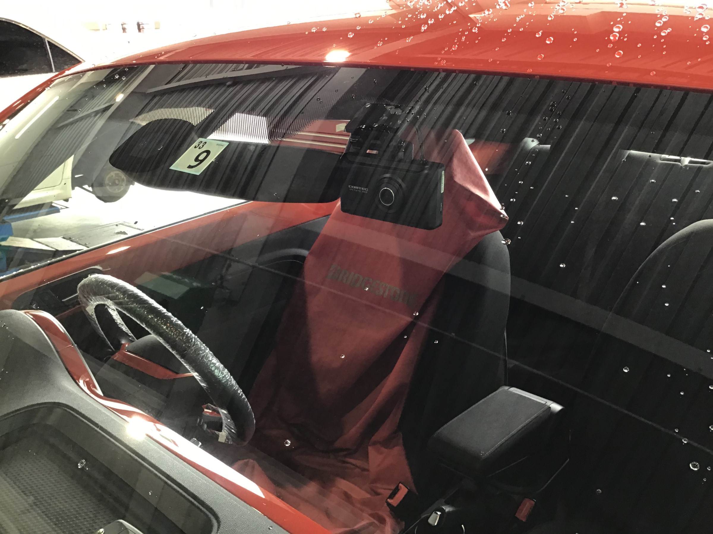 ピット入庫の前にはハンドル・シフト・シートの3点カバーは必須ですね。