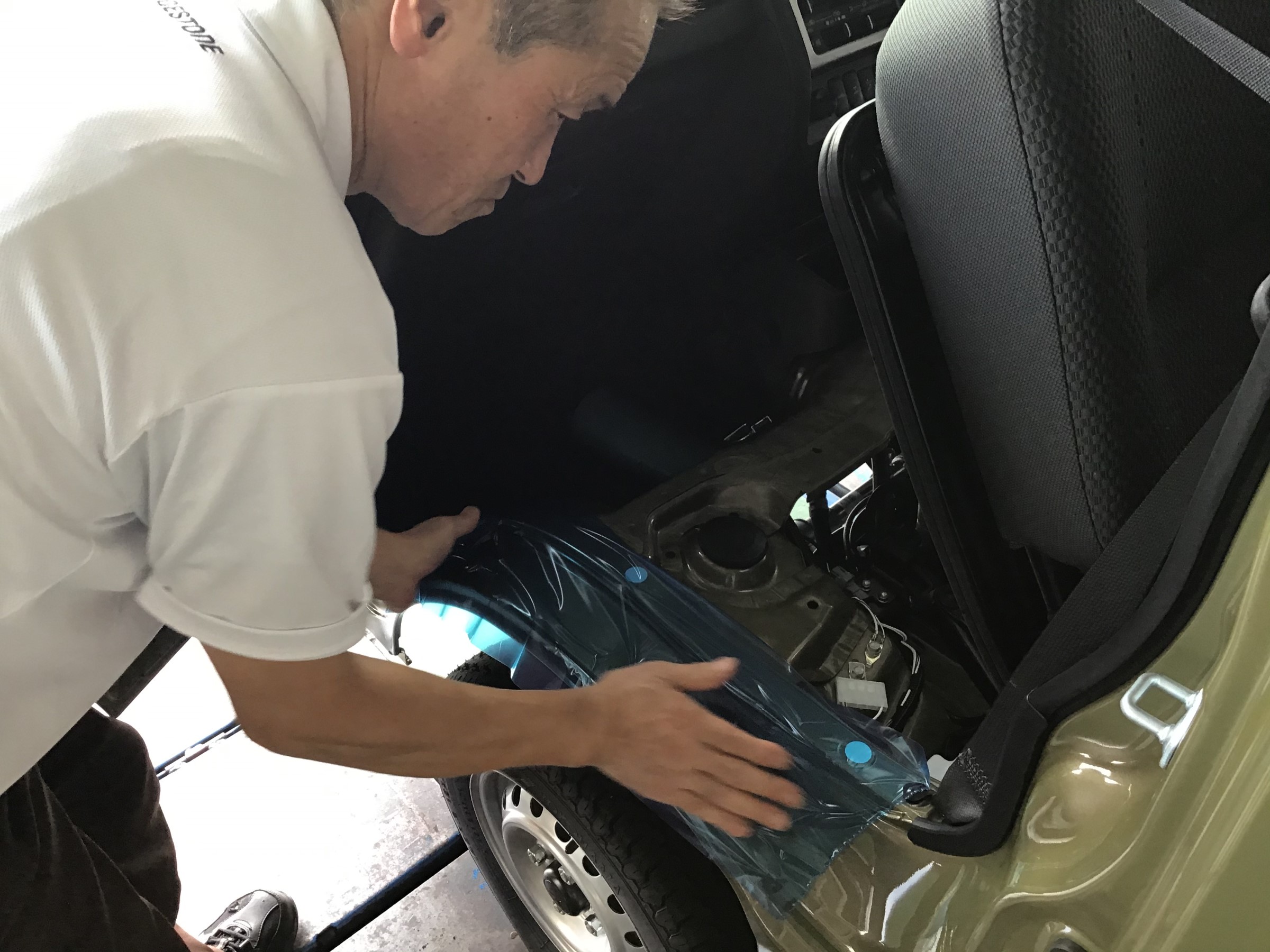 慎重にマスキングをしてシートを車内から