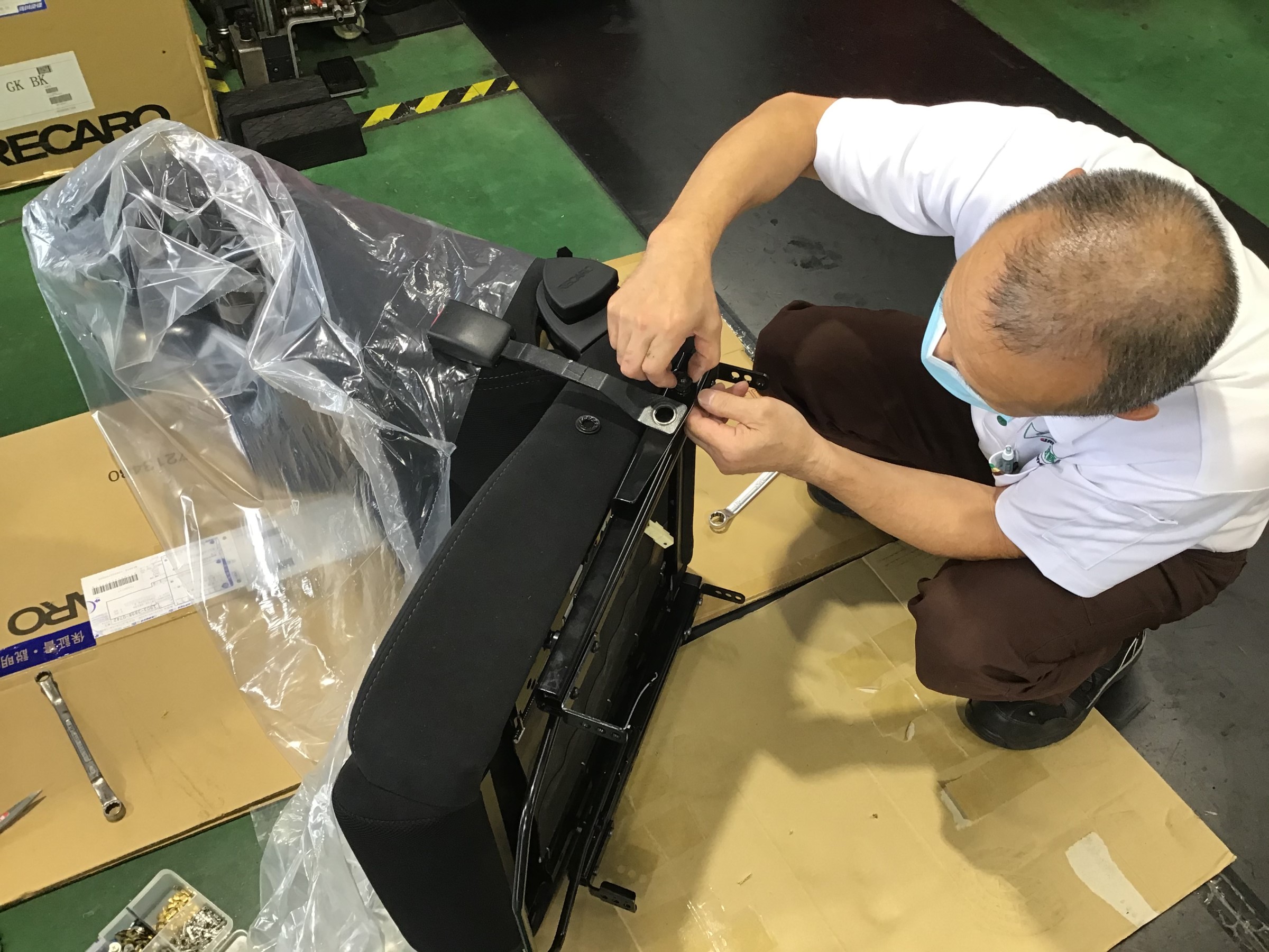 シートレールやシートベルトの組立はプラモデル感覚で組立ができるんですよね。