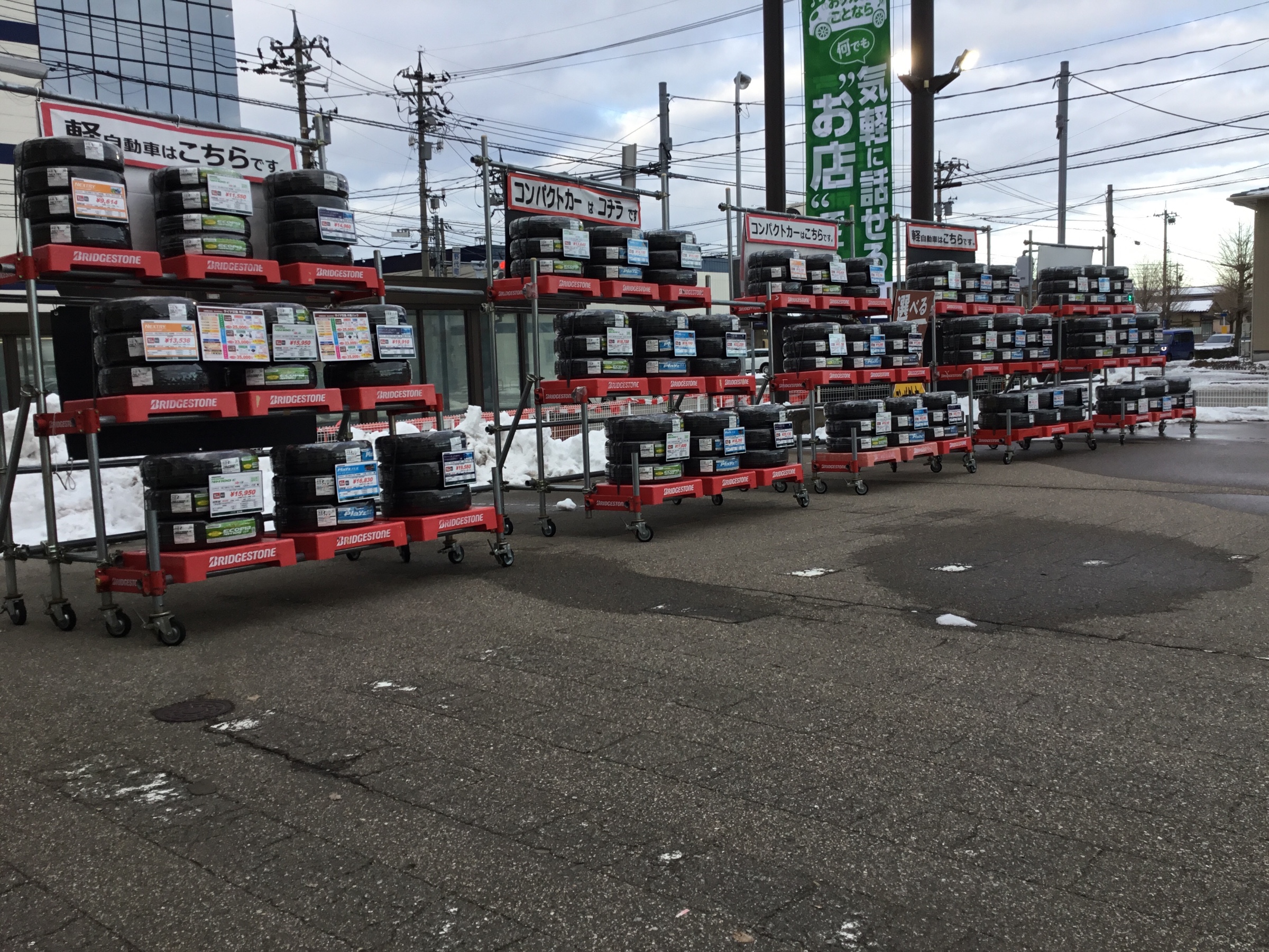 当店も、タイヤの履き替え時期に向けてただいま急ピッチでお店作りを行っています。