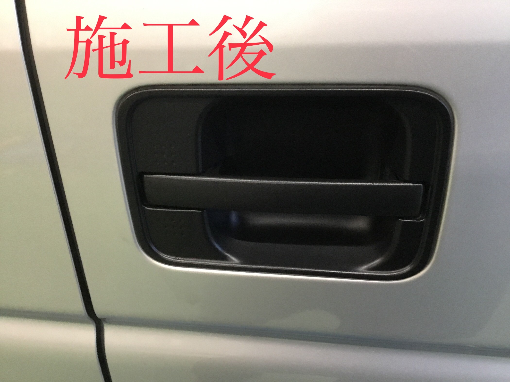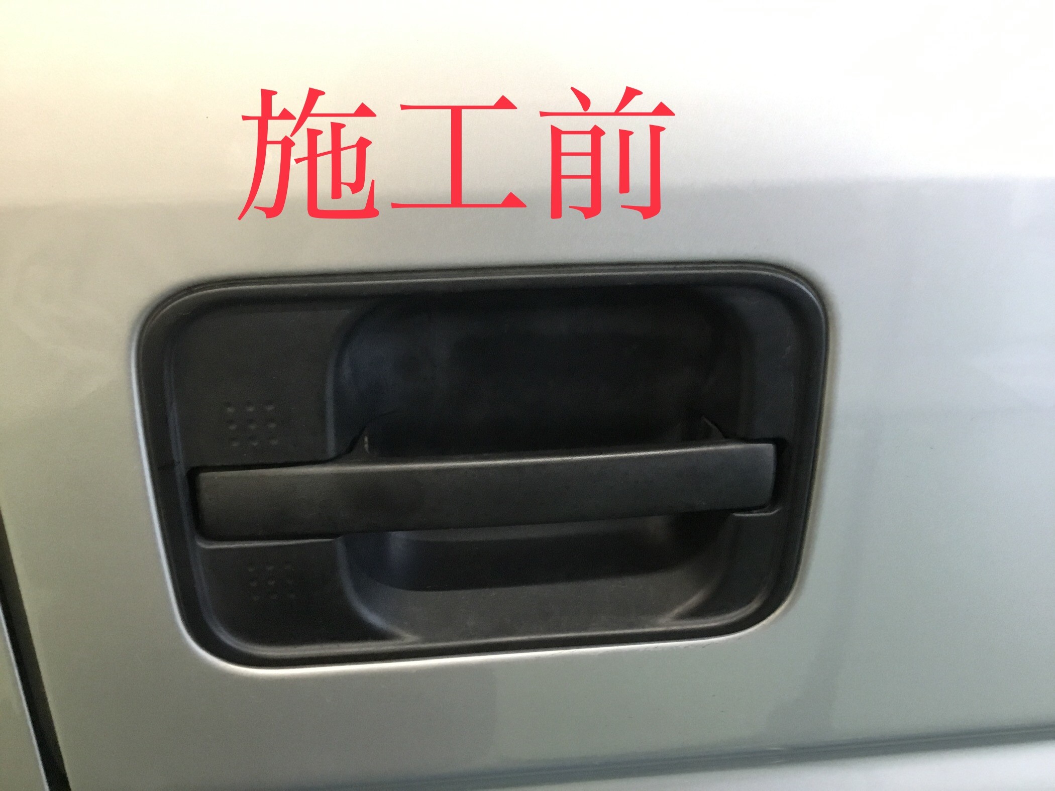 本日、スズキエブリイに樹脂コーティングを施工させていただきました。施工させていただいた箇所は、ドアノブ部なのですが、最近は無塗装の樹脂パーツが多用されている事が多いのですが、時間の経過と共に表面が劣化し色褪せしてしまうという弱点があります。