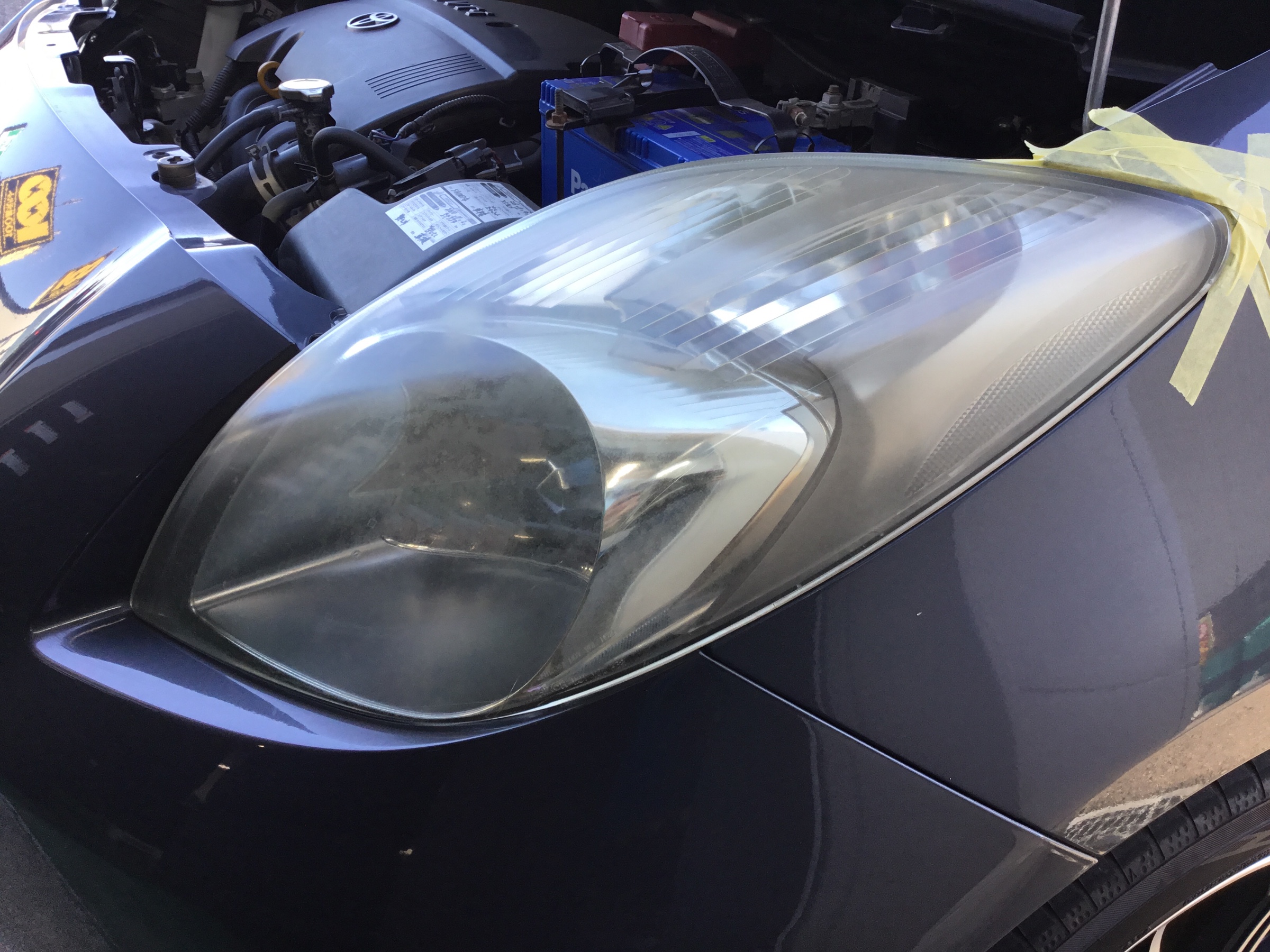 いつも当店をご利用いただいている トヨタ ヴィッツ にお乗りのお客様。ライトのくすみが