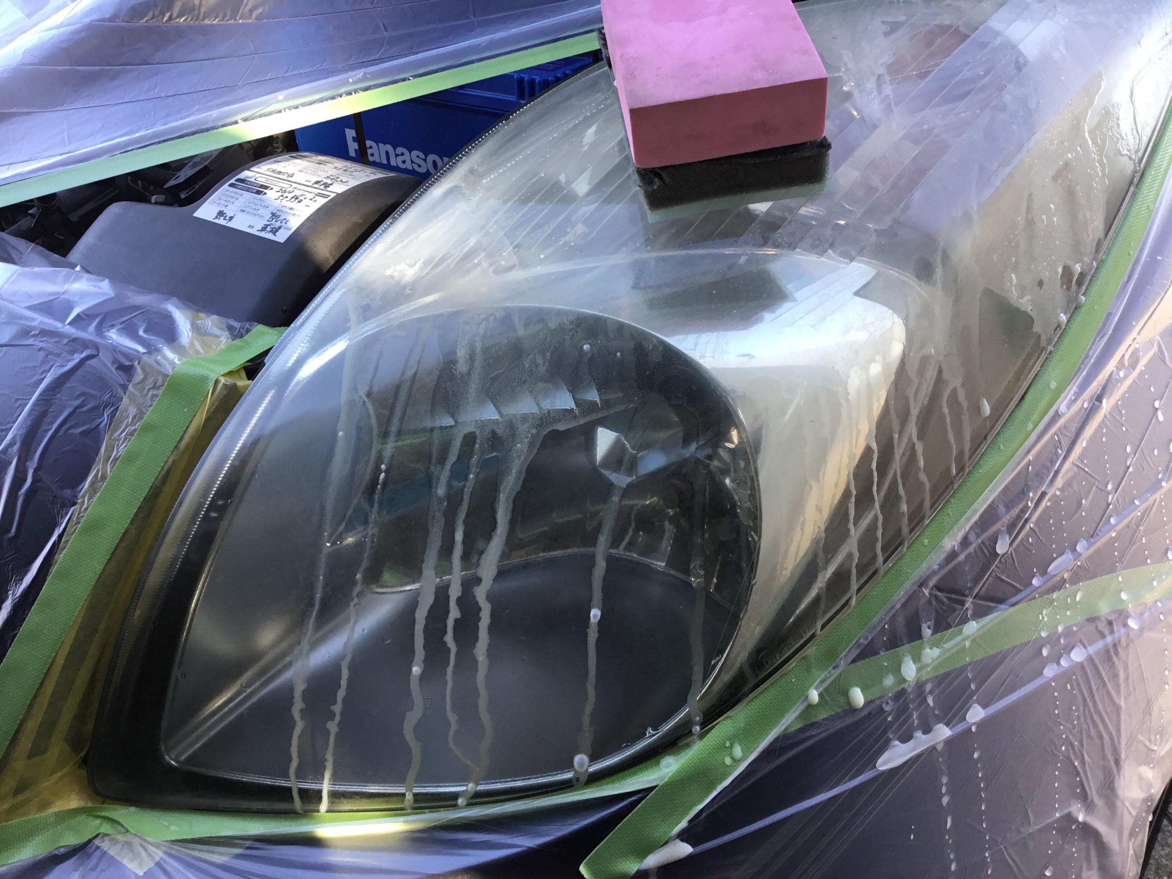 今回、ご紹介させて頂く作業は、好評をいただいているヘッドライト磨きコーティングです。
