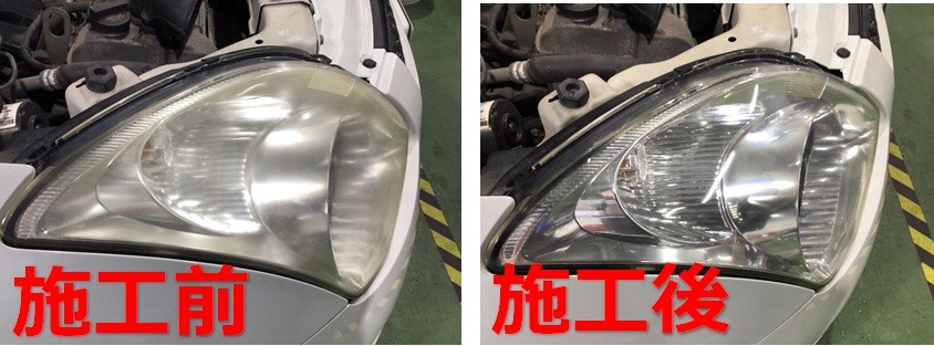 ヘッドライトの【黄ばみ」除去の施工になります。