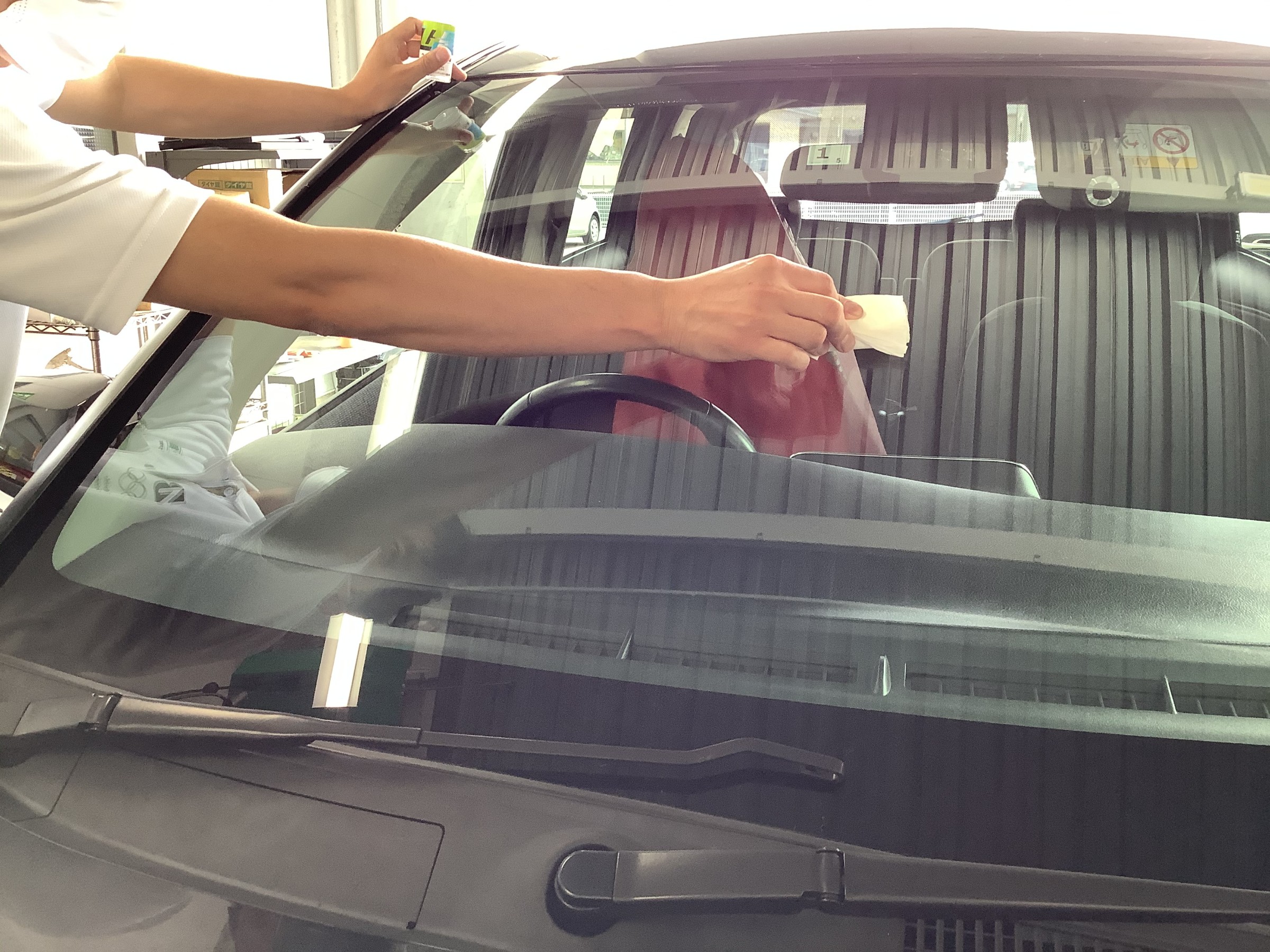 本日はトヨタ 「シエンタ」 でのフロントガラス撥水コートの施工作業紹介です。