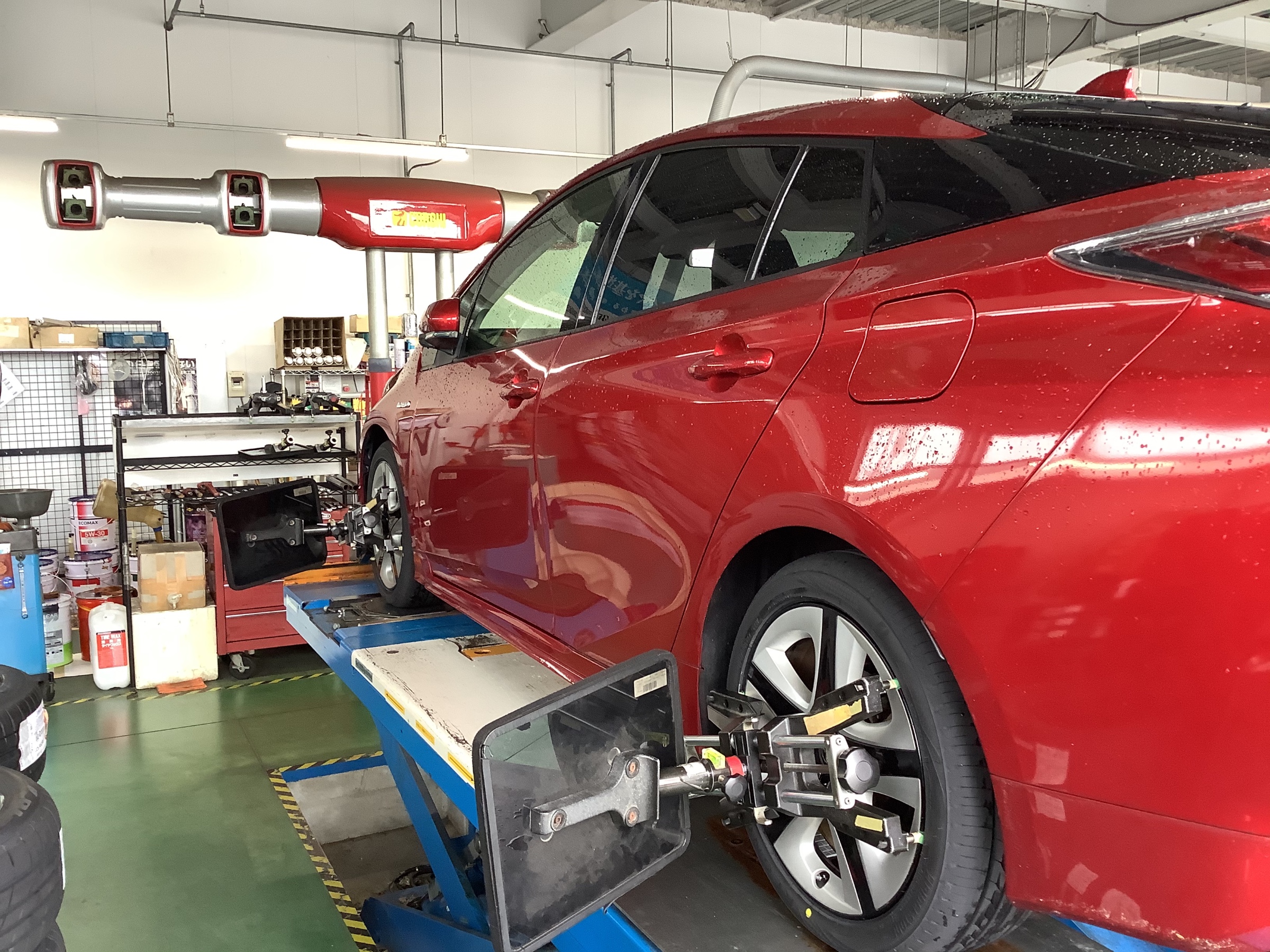 今回 ご紹介させて頂く作業は、プリウスのタイヤ交換&アライメント調整です。