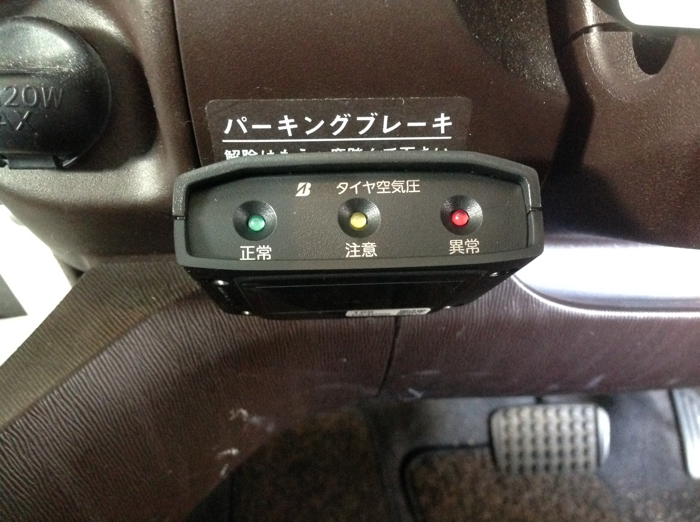 正常だと緑色、設定圧から15%減で黄色、30%減で赤色が点灯します。さらに低いと赤の点滅になります。