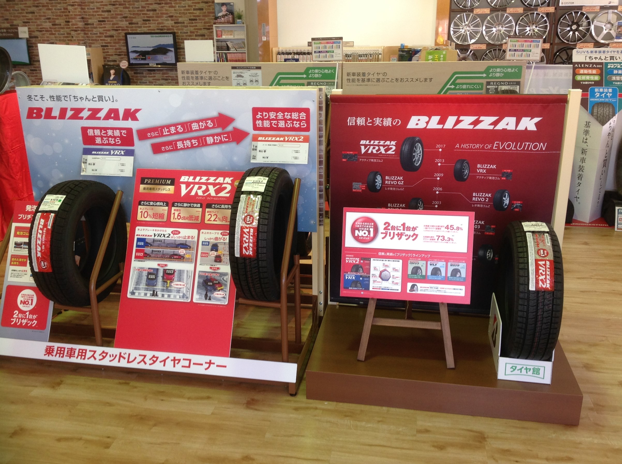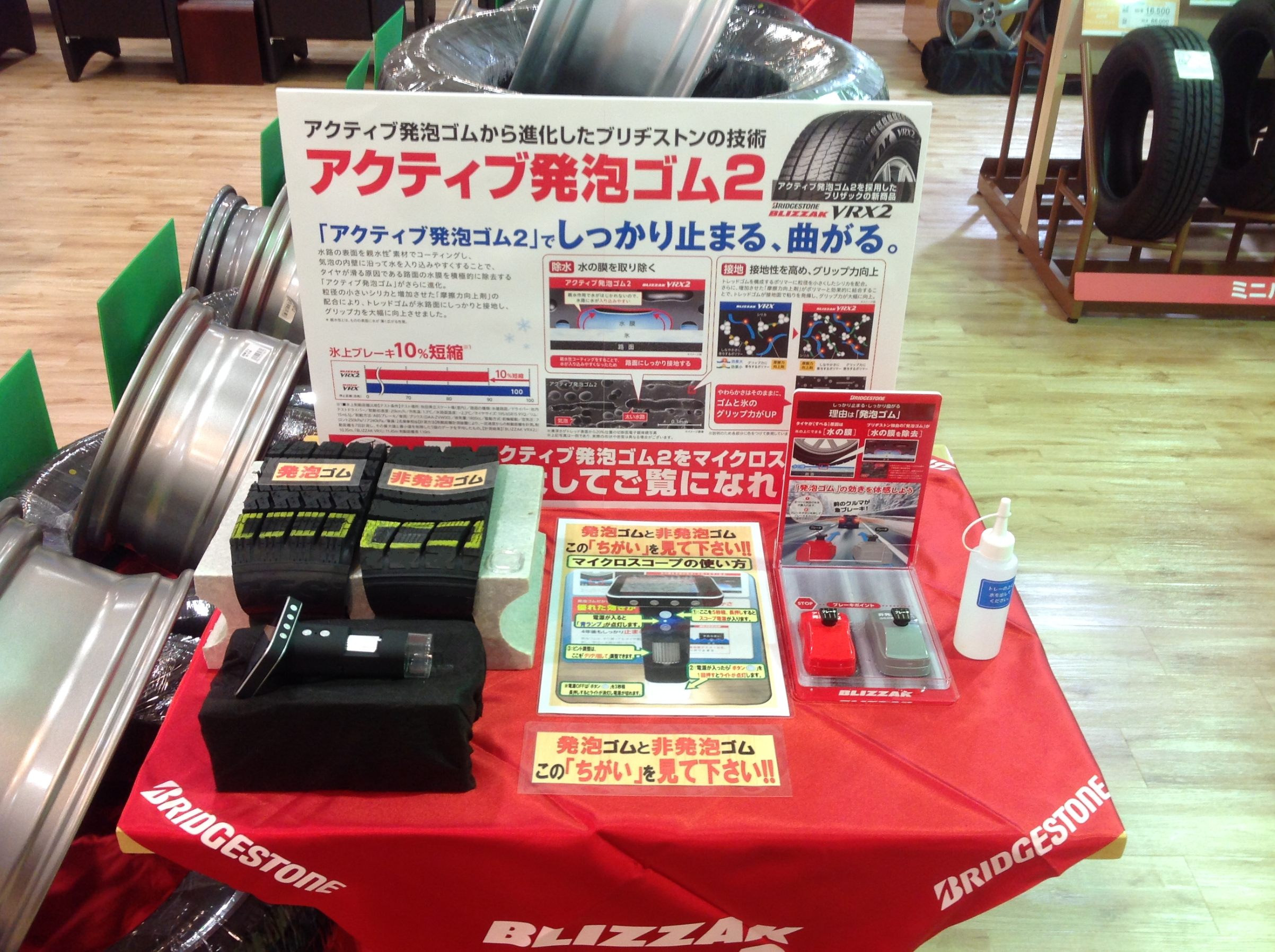 今年発売されたVRX2の展示をメインに、ブリヂストンの発泡ゴムの仕組みやメリットを