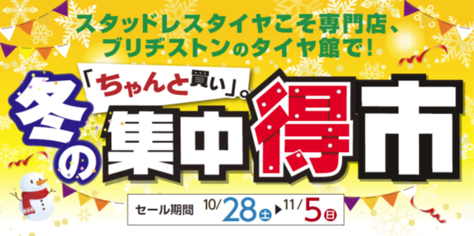そこでタイヤ館では、冬の集中得市を明日より開催いたします。