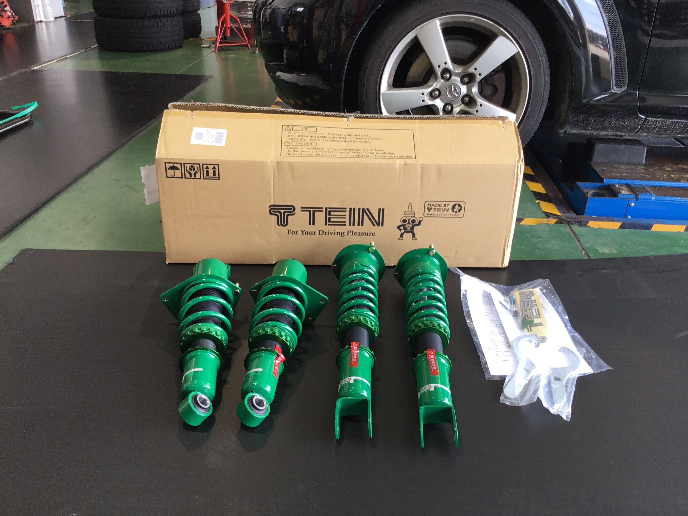 テインさんのFLEX Zです。とてもリーズナブルに車高調を導入できて、減衰力の調整もでき、