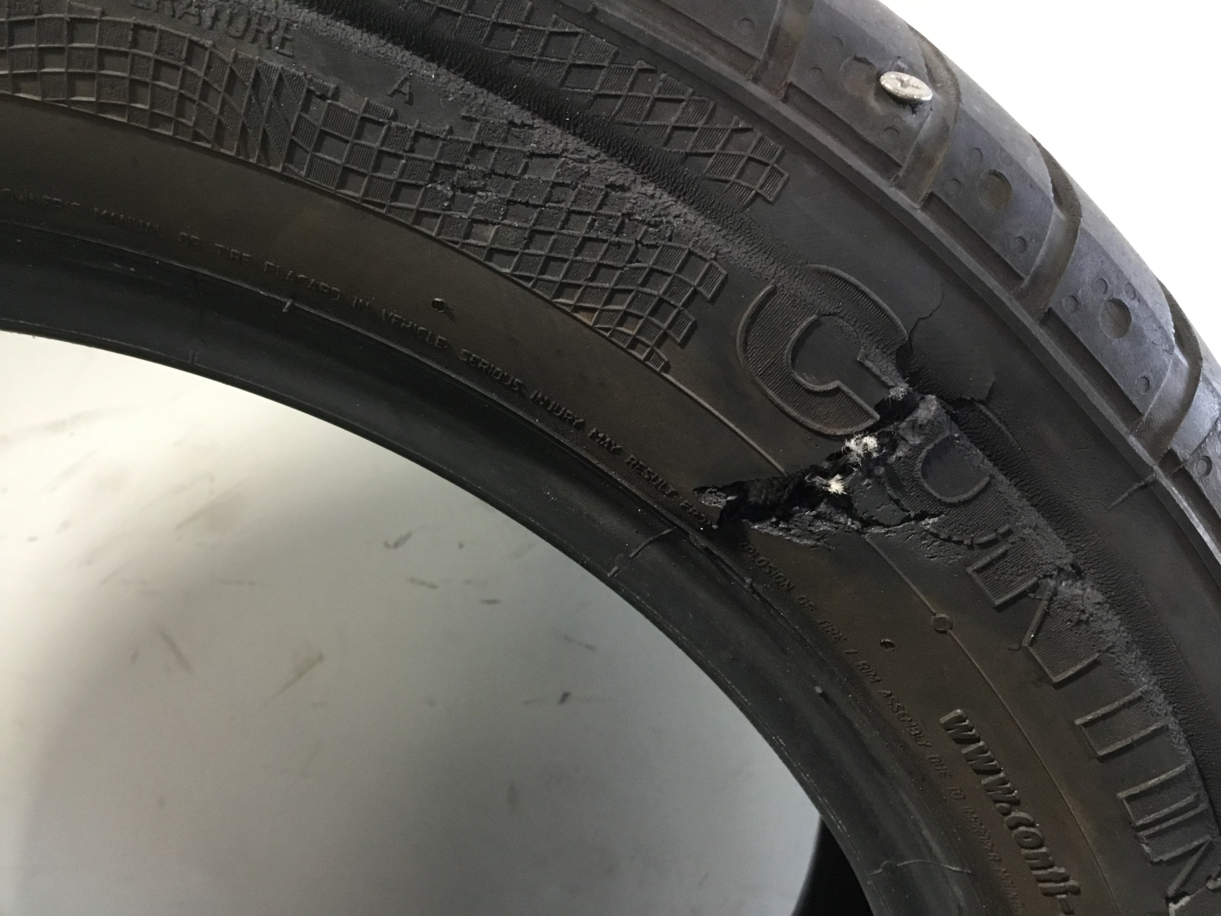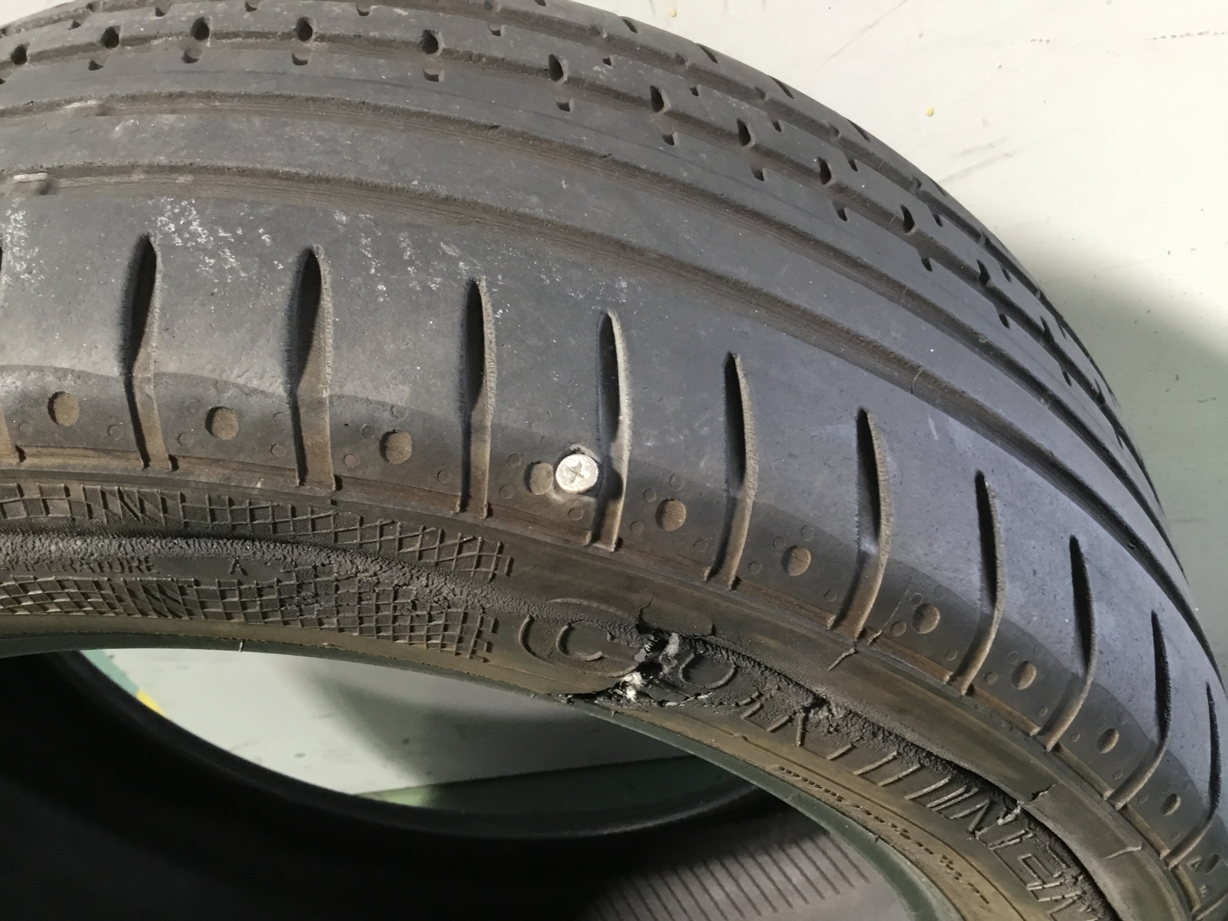 気が付かずそのまま走行しサイドが裂けてしまった例です。