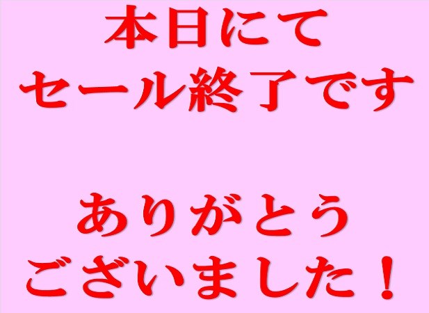 セール終了いたしました♪ ポスト 2018年8月12日 8/12(日)をもちまして、 セール終了いたしました! たくさんのご来店、誠にありがとうございます♪ そして、商談/作業の時間をたくさん待って頂き、 ありがとうございました! 次のセールも元気いっぱい、ガンバります♪ お楽しみに~♪ カテゴリ:お知らせ