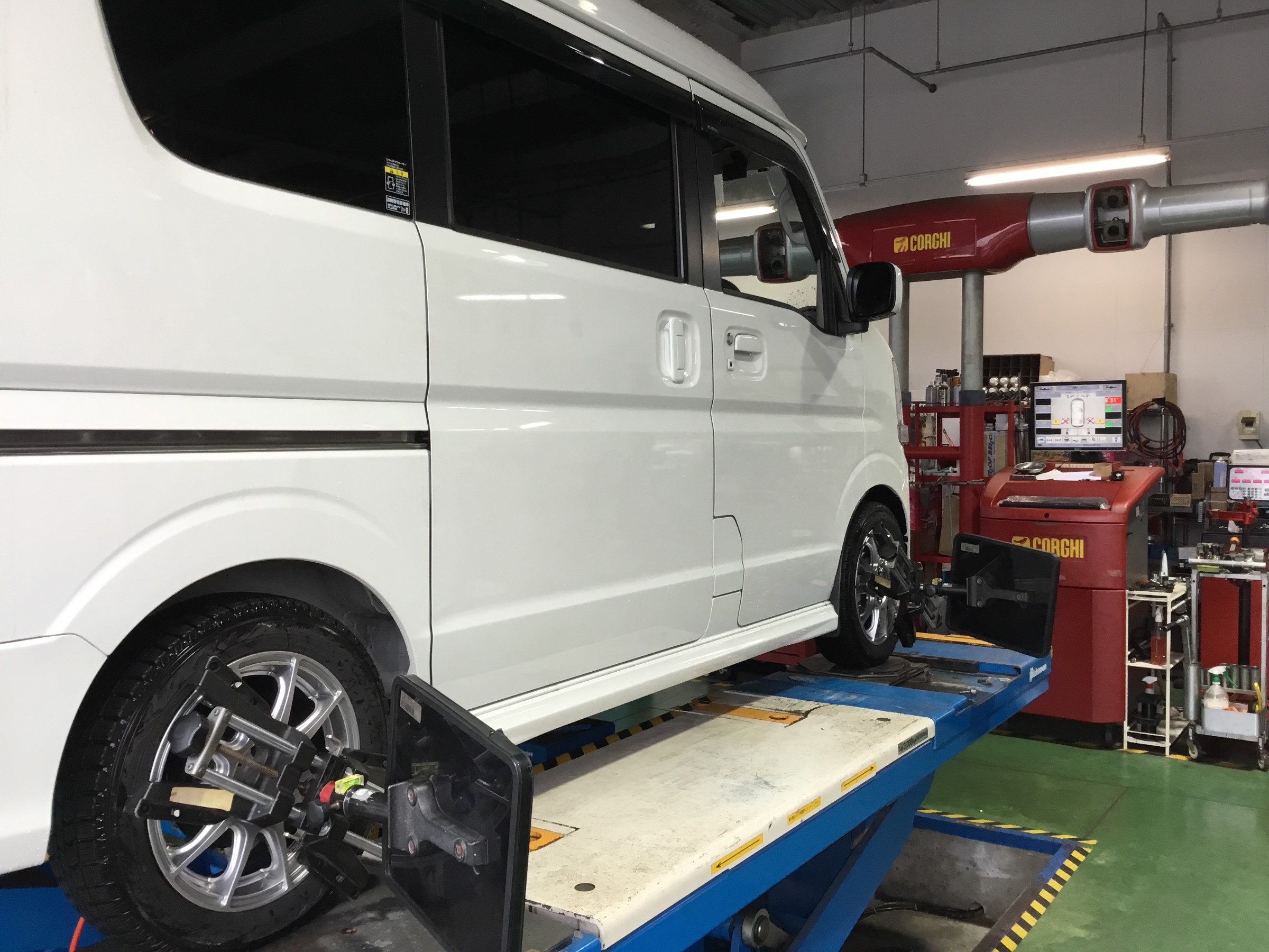 取り付け後は足回り角度の修正(アライメント)をしっかり調整!