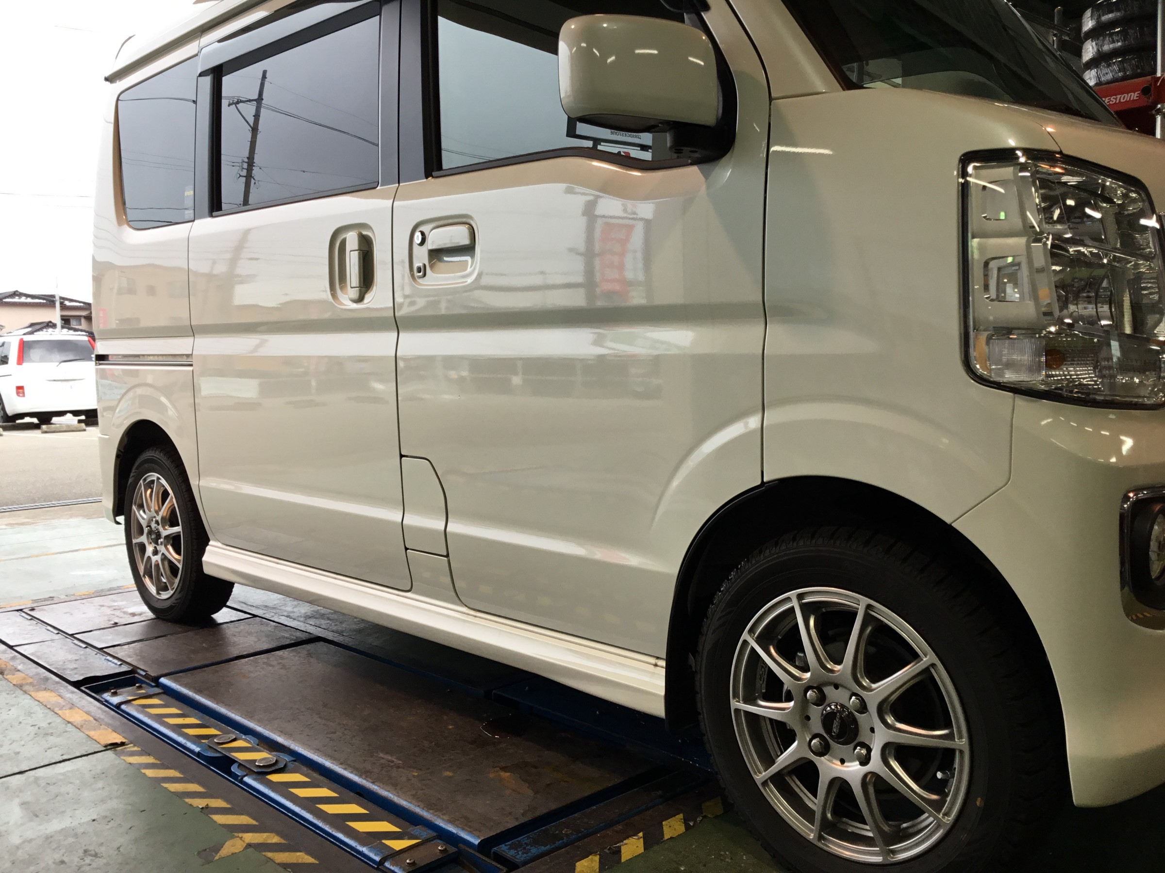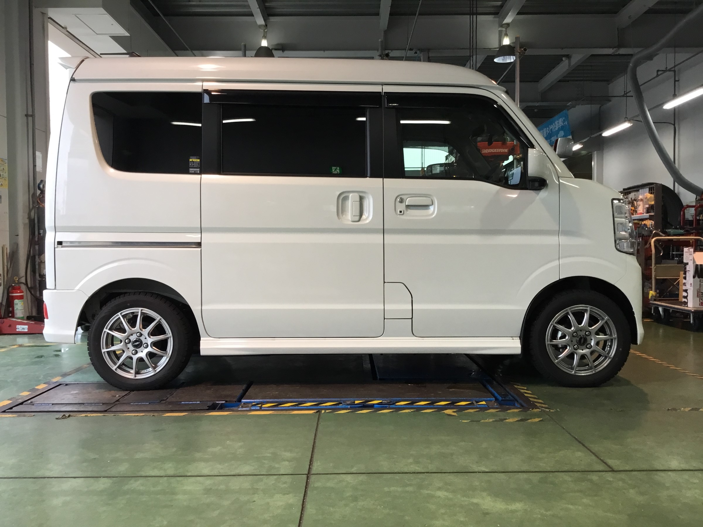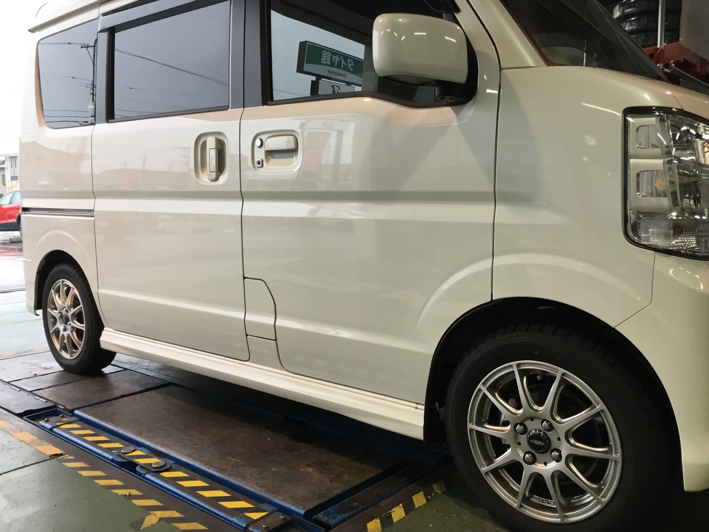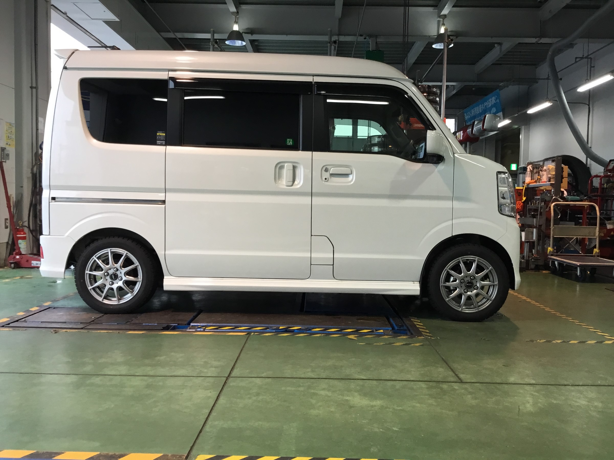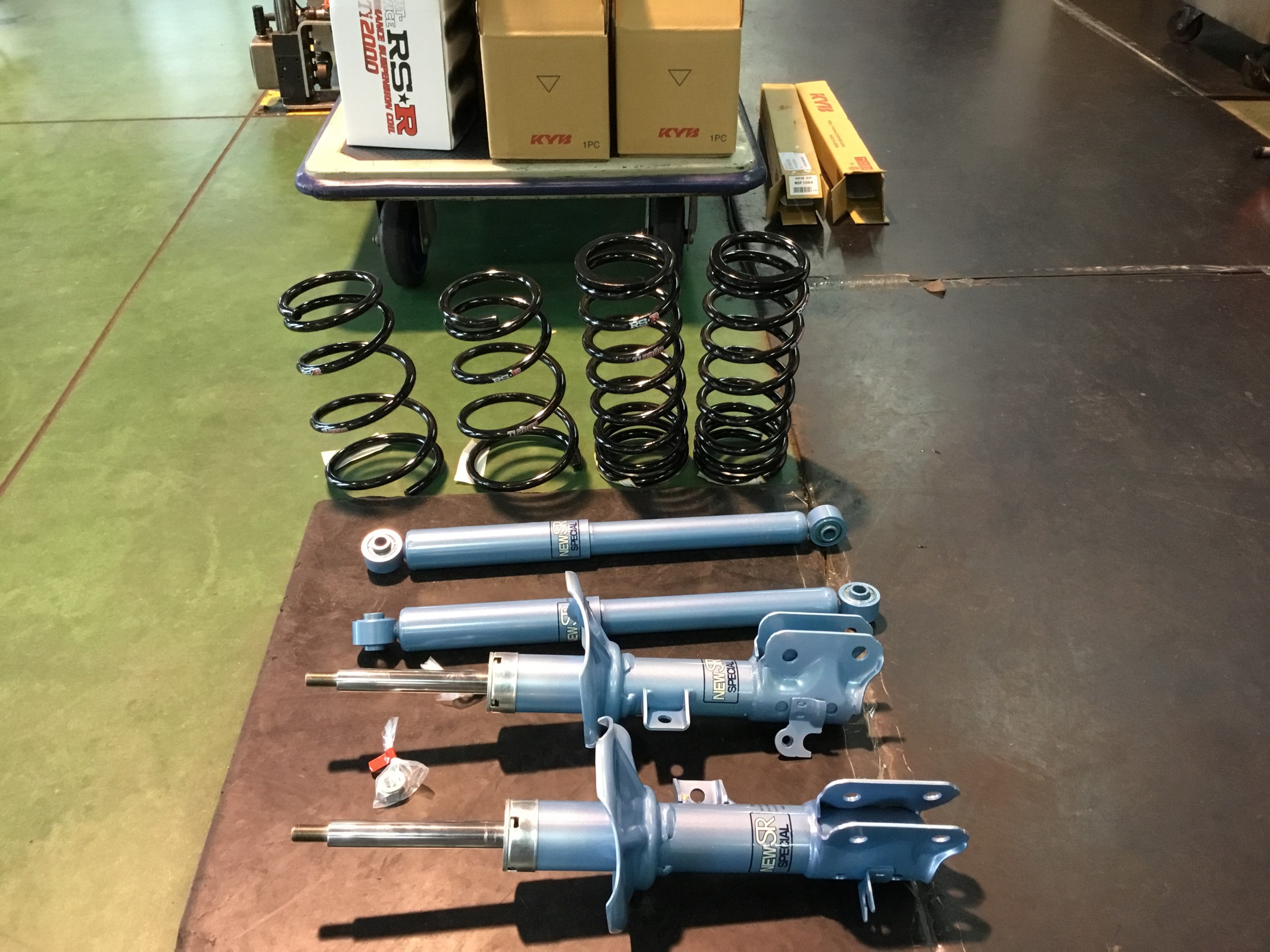 今回の取り付け作業はエブリイのショックサス交換です。純正の乗り心地をより快適でしなやかの乗り心地にするため、ショックはカヤバのNEW SRと、サスはRSRのTⅰ2000ハーフダウンでの組付けです。