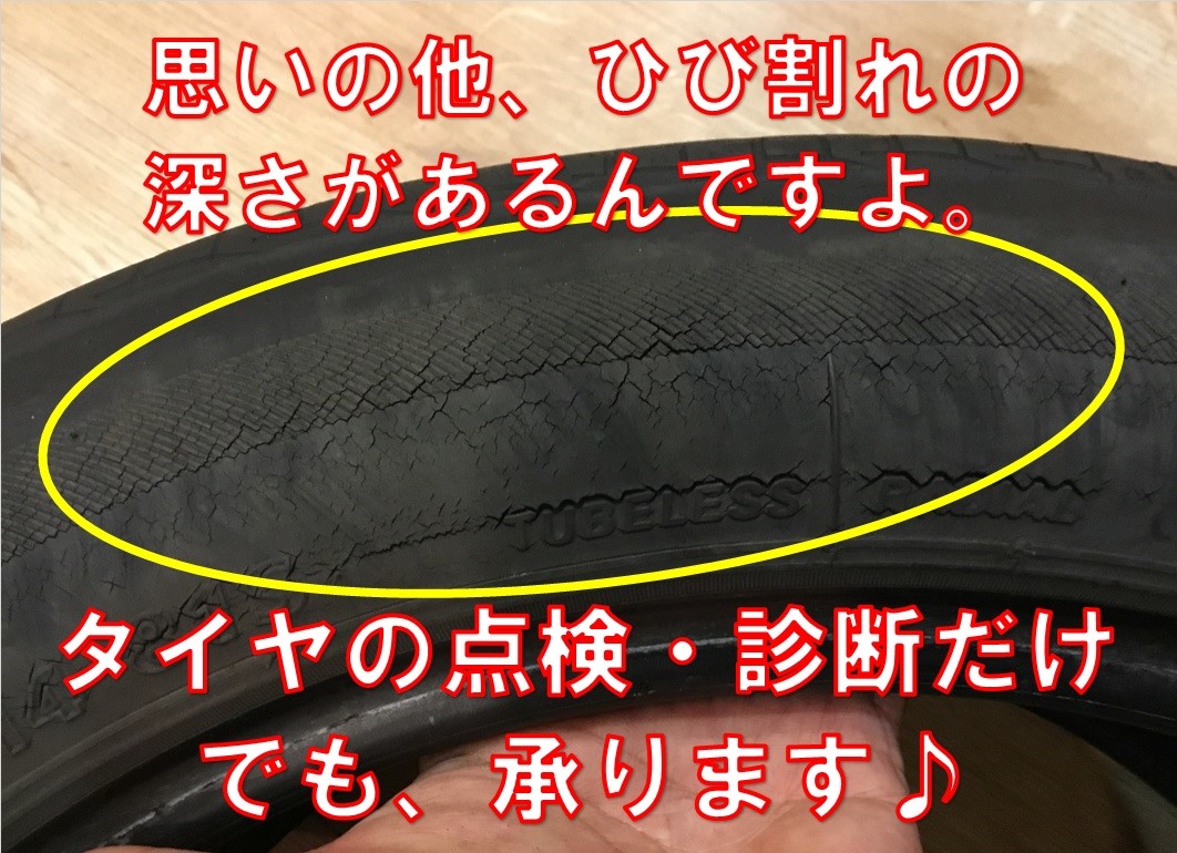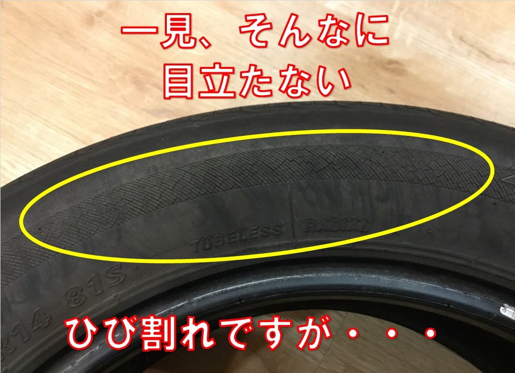 タイヤはゴム製品ですので、経年劣化によるゴムの劣化(ひび割れ)が宿命です。