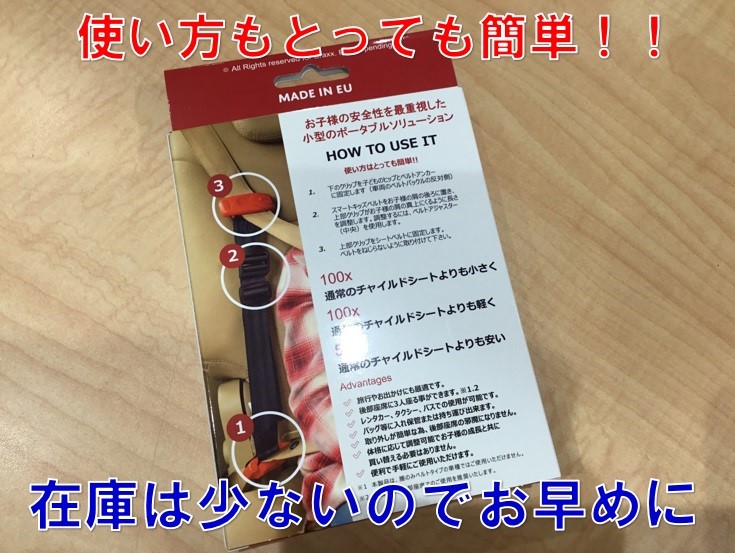 バックオーダーを掛けてた、話題の「スマートキッズベルト」が入荷しました!