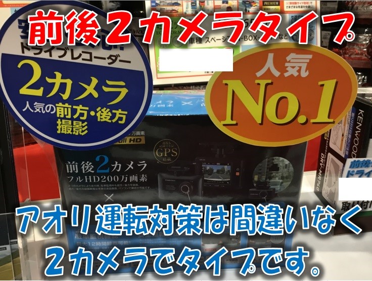 『アオリ運転対策ならお任せください』の2カメラタイプ。