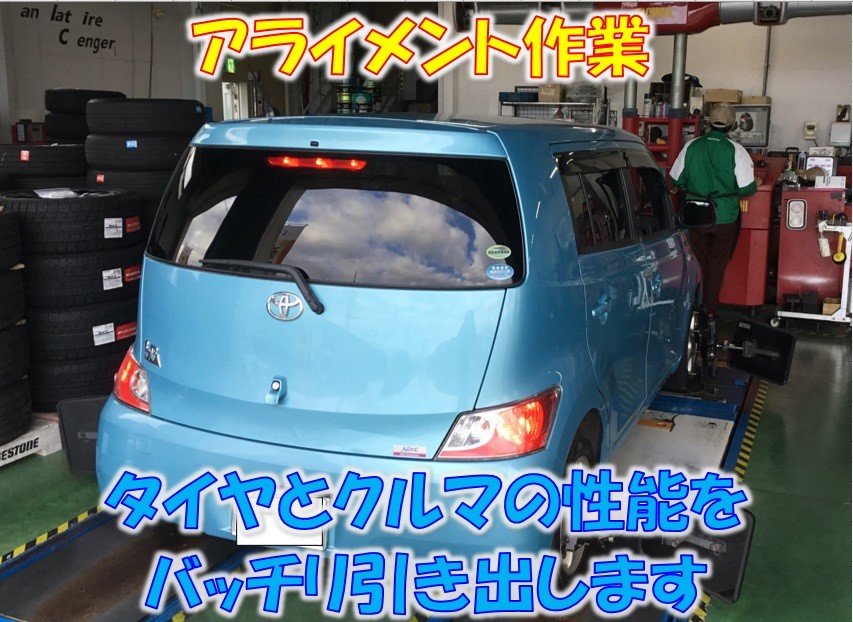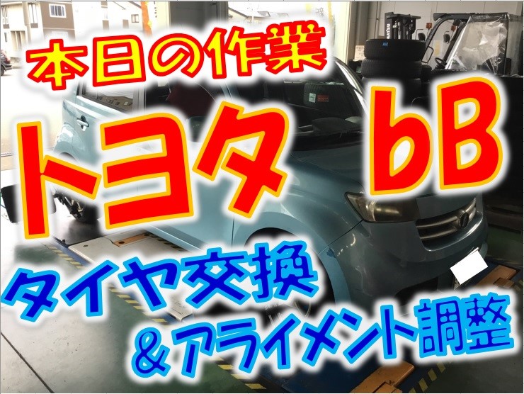 トヨタ bBのタイヤ交換&アライメント調整です。