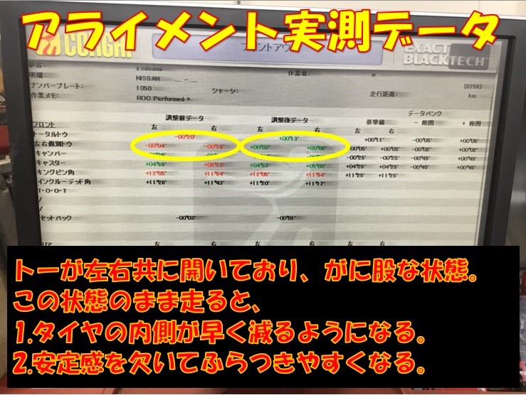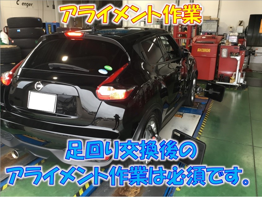 日産 ジューク アライメント調整 ポスト 2020年1月27日 野々市市 金沢市 白山市 HPご覧の皆様、 こんにちは、タイヤ館 金沢西店です! 本日の作業紹介は。。。 日産 ジュークのアライメント調整作業です。 お客様が自分で足回りを交換したとのことでアライメント調整をさせて頂きました。 足回り交換をすれば当然のようにアライメントにズレは出ますし、 車高調整だけでもアライメントの変化があるので調整が必須になります。 カテゴリ:タイヤ関連 その他 その他 担当: 田中