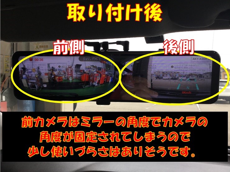 が、前側カメラはミラーの角度とカメラの角度が固定の為、