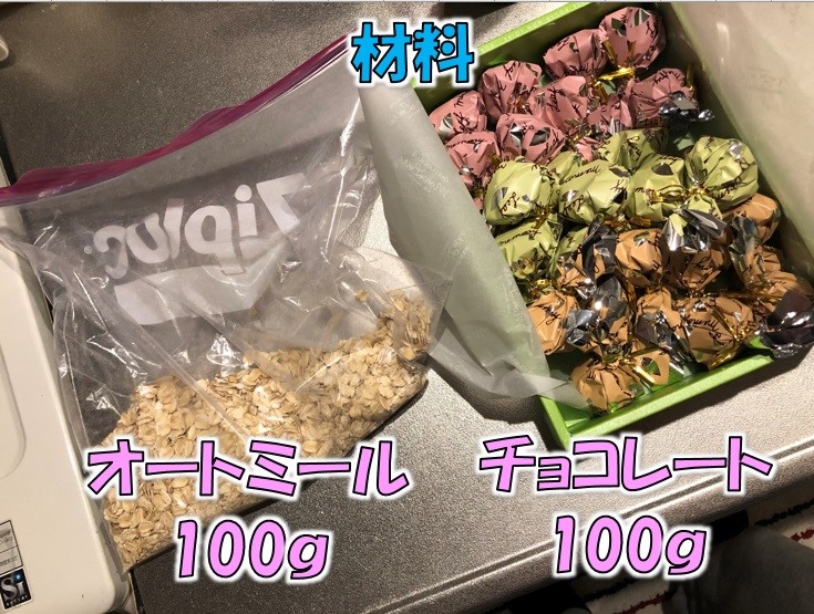 朝食用のオートミール100gと存在を忘れ去られたいつぞやのチョコレートのみ