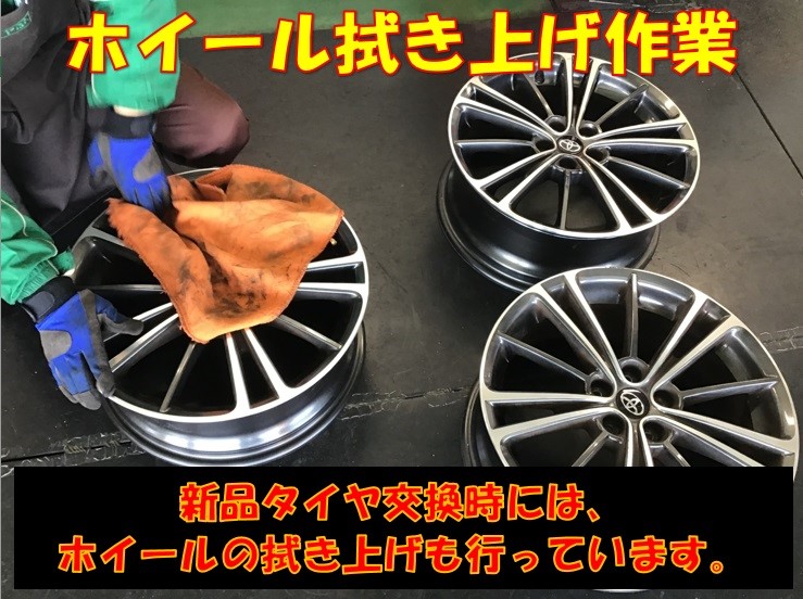 当店では新品タイヤへの交換の際はホイールの拭き上げも行っています。