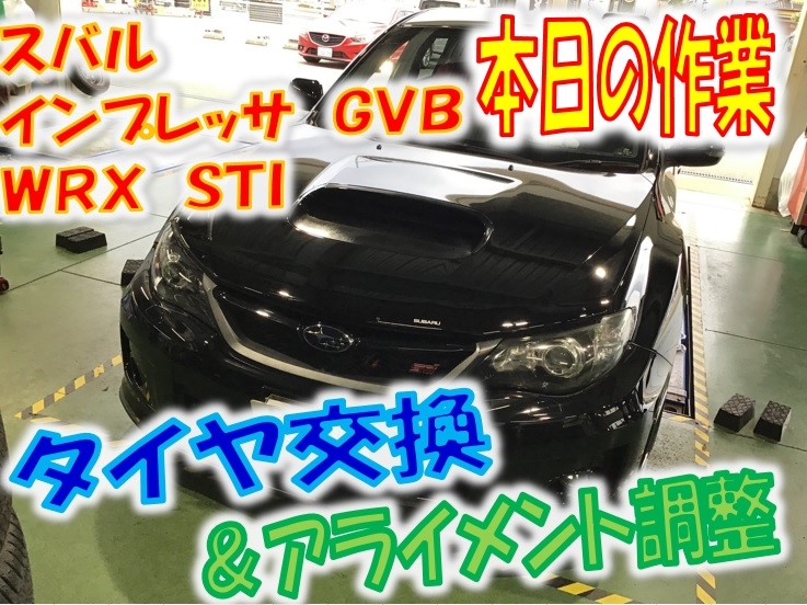 スバル インプレッサWRX STI GVBのタイヤ交換&アライメント調整です。