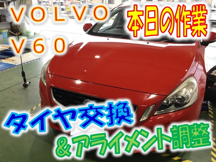 VOLVO V60のタイヤ交換&アライメント調整です。