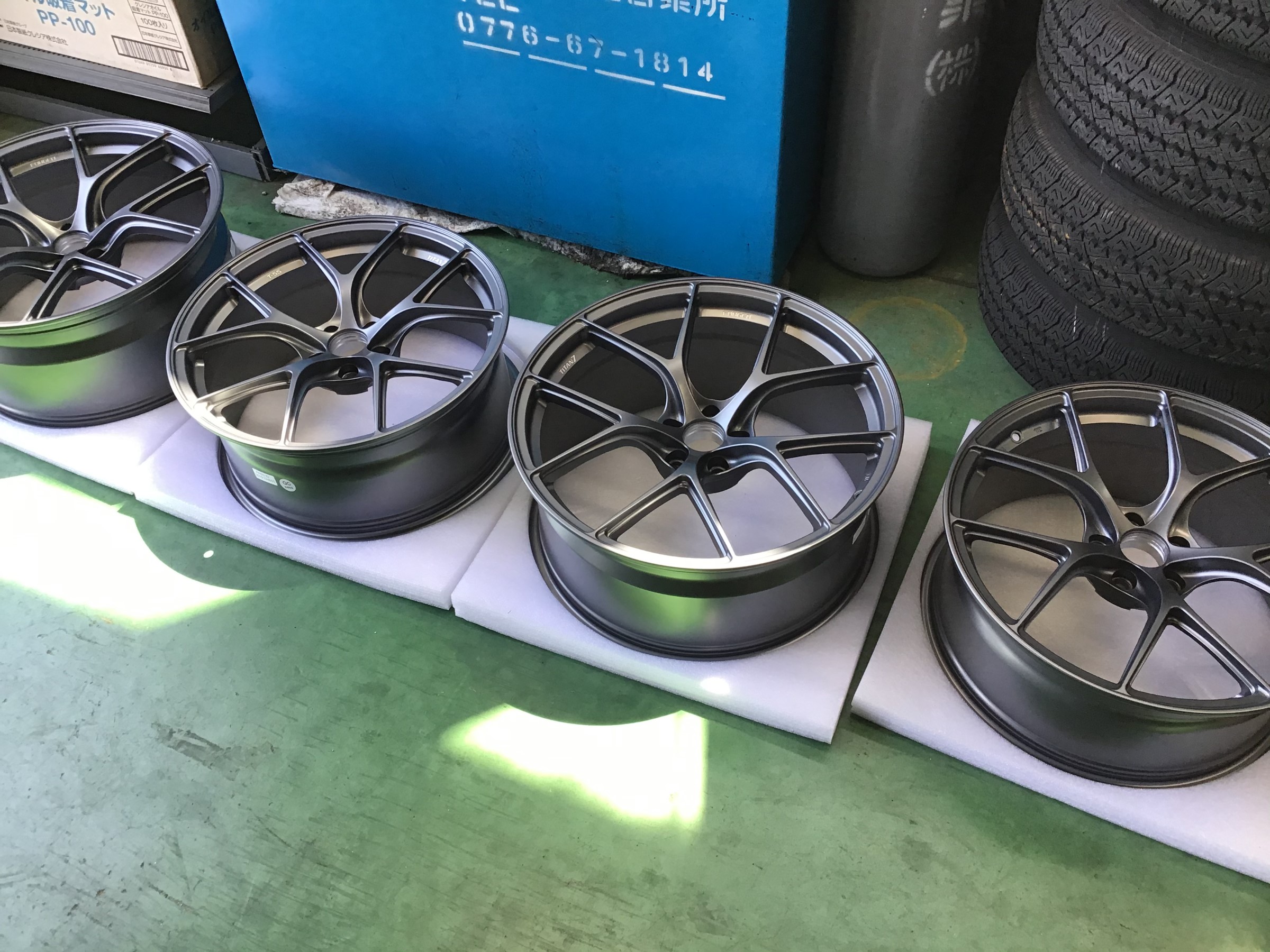 タイヤ組付け前にお客様が持ち込みのホイールコーティング剤でコーティングされていきました。