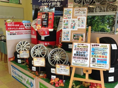 入口に ポスト 2013年10月11日 こんにちは。10月なのにこんなに暖かい気温。まいっちゃいますね。秋は過ごしやすい気候なのにゆったりすることができないですね。今日は、お店の入口付近にこれから来る冬にむけてスタッドレスタイヤを展示してみました。通勤・スキーに必要なスタッドレスタイヤ!安全・安心につながるスタッドレス!是非試してみて下さい。 担当:なりひら