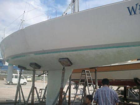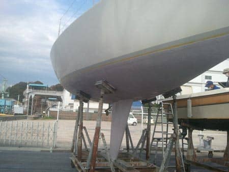 年に数回手伝いますが、今回はヨットの底の塗装の塗り直し。