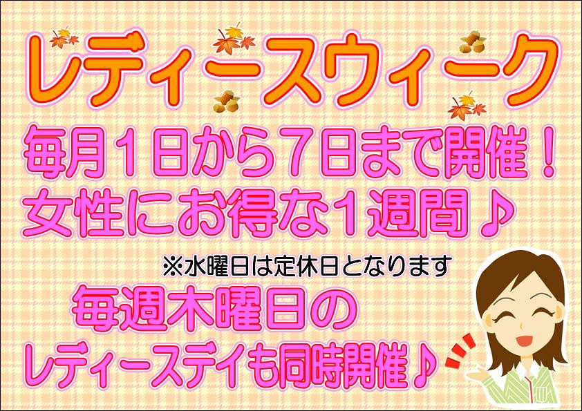 2022年11月のレディースウィーク・ディのお知らせ ポスト 2022年10月30日 いつもご利用いただき、ありがとうございます! 2022年11月のレディースウィーク・ディのお知らせです。 女性のお客様限定! 11月1日から7日までの6日間、そして毎週木曜日は、 エンジンオイル・ワイパーゴム・エアコンフィルター・ バッテリー・オートマオイルなどのメンテナンスがお買い得になります。 ぜひこの機会にご利用ください♪ ※11月2日(水)は、定休日となります。 カテゴリ:お知らせ