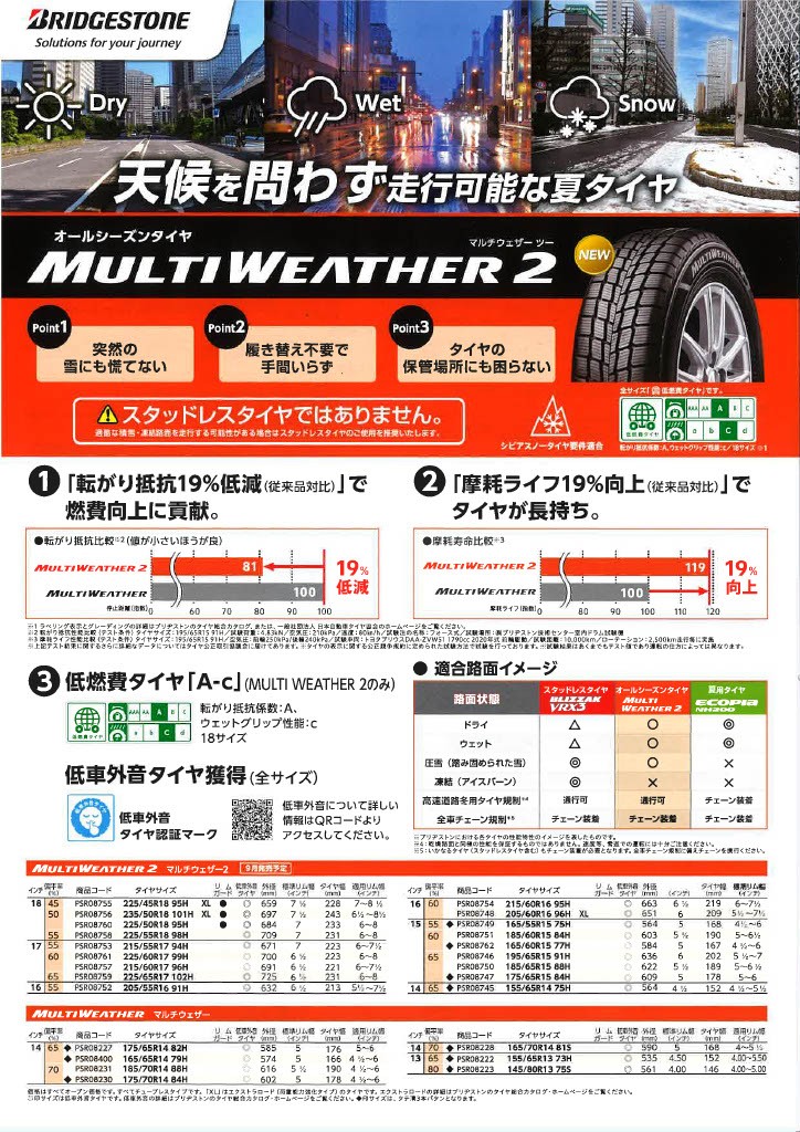 ブリヂストン オールシーズンタイヤ MULTI WEATHER2(マルチウェザー2)