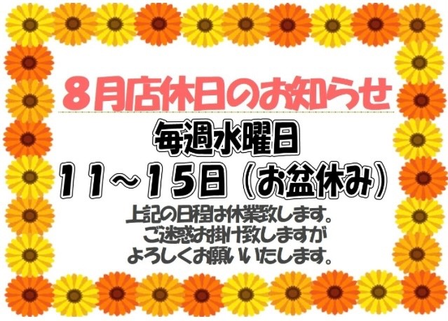本日からお盆休みに入らせていただきます。