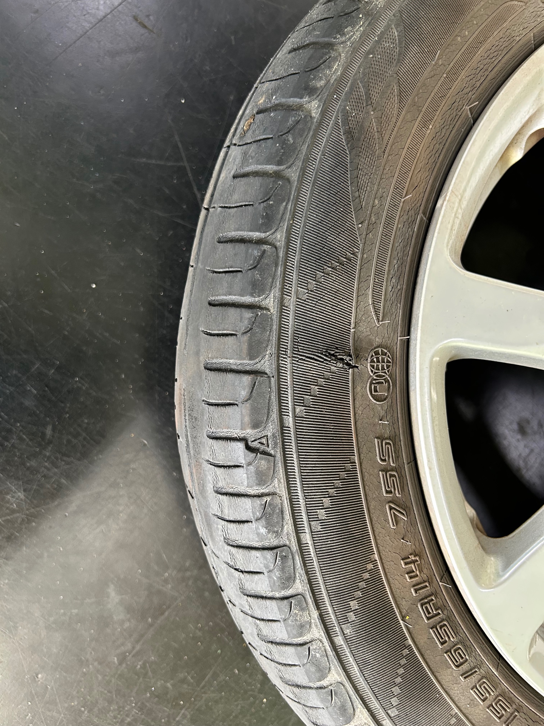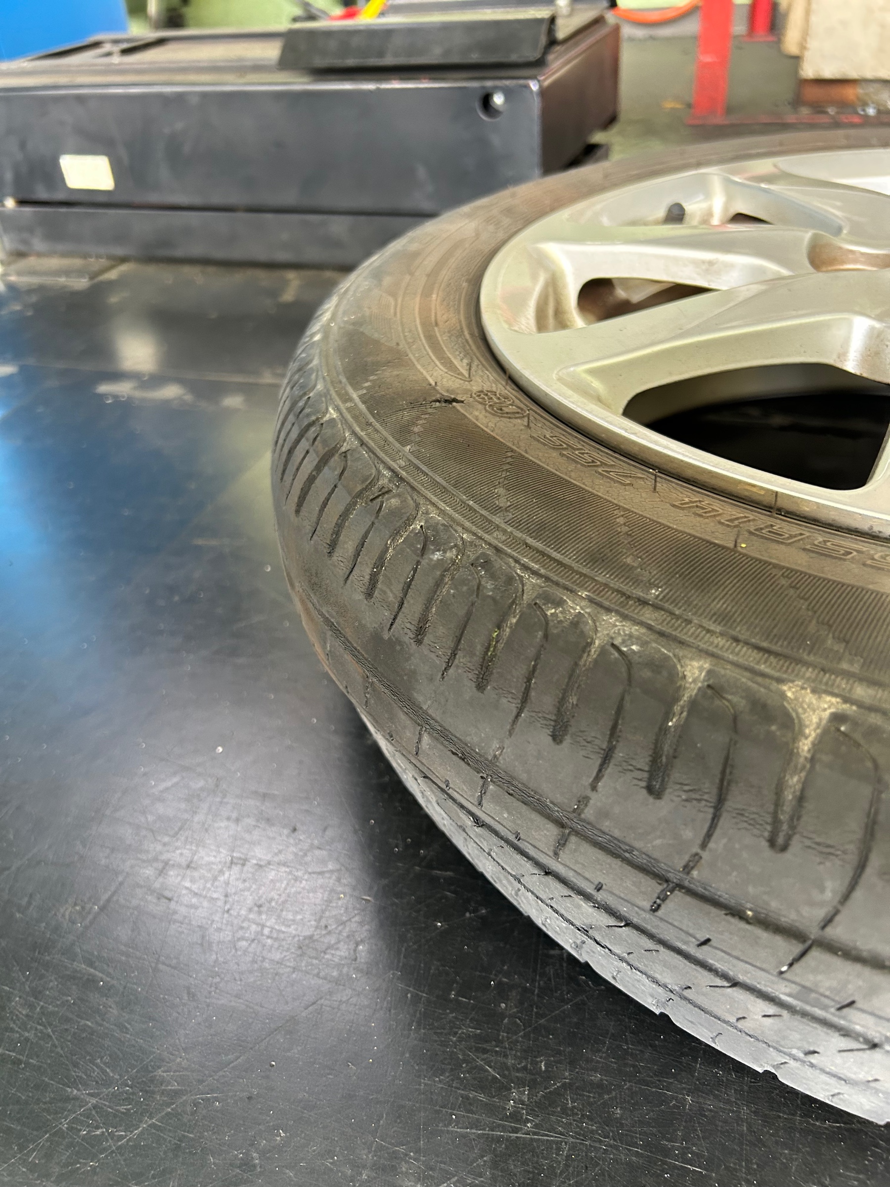 タイヤをぶつけてしまい、タイヤが膨らんでいるとのご相談でした。