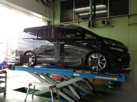今日は20インチ装着ヴェルファイヤの作業をしました。