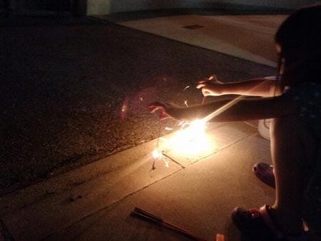 上のお姉ちゃんは、ろうそくでチャキチャキと花火に火を点けて一人ご満悦(^.^)