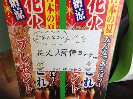 今日店に来てみると、あれだけあった花火が無くなってました。