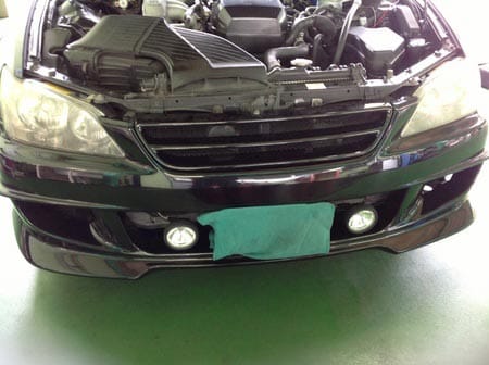 ヘッドライトを外したほうがやりやすいと思いバンパーを外して作業。