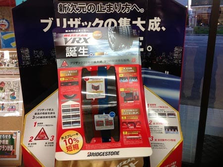 今日は店の入口に設置してあるスタッドレスコーナーブリザックVRXをいじってみたので載せてみました。
