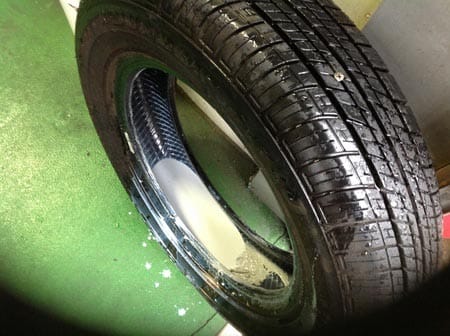 修理剤を使ったタイヤの写真を撮ってみました。